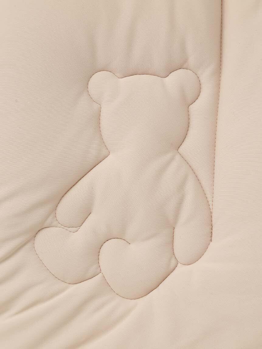 ちょこんとお座りしているベアにほっこり癒されるデザインのキルトケット。従来品以上に柔らかい中綿を使用し、もちもちとした触り心地がパワーアップ。優しいベージュカラーがお部屋にしっくりとなじんでくれます。ベア柄プリントの寝具シリーズと合わせて、統一感のあるコーディネートをお楽しみください。
