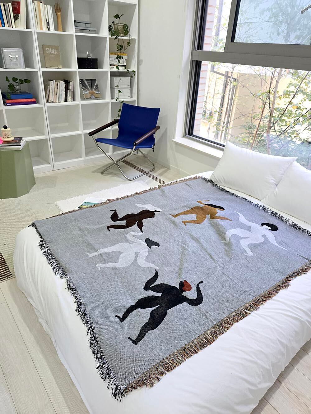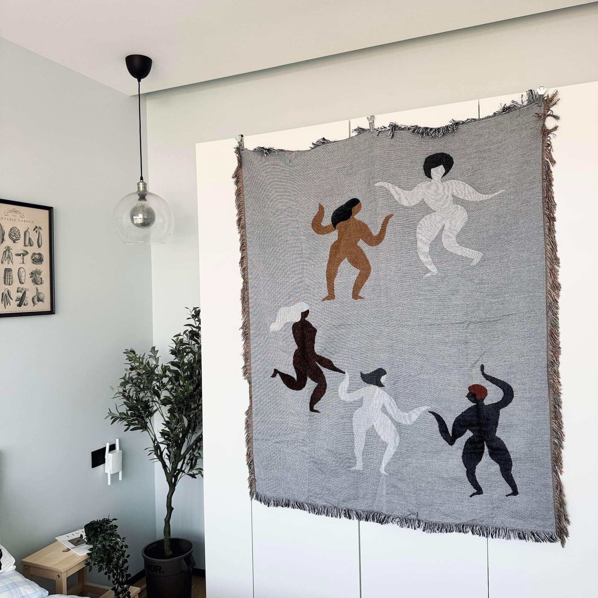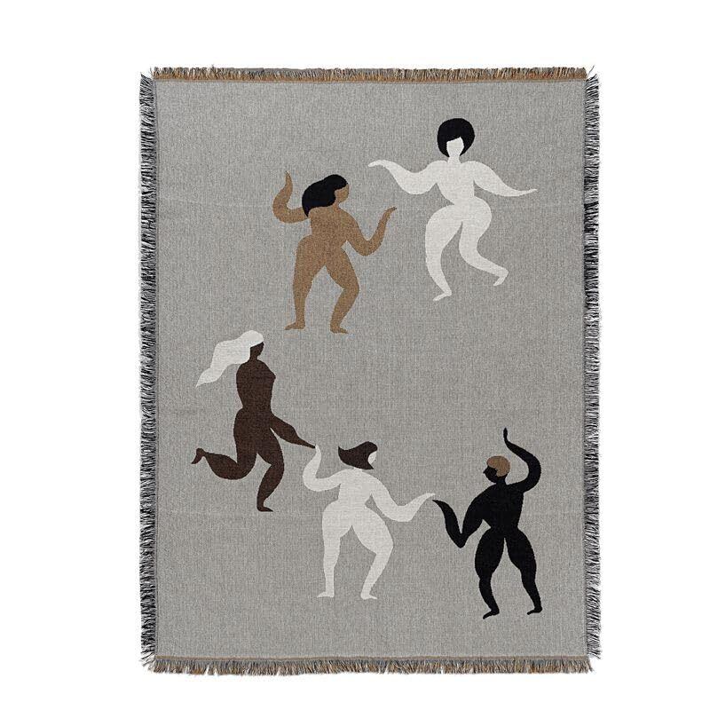 ファームリビング タペストリー 踊る人物デザイン, ユニーク デザイン 北欧風 Dance ,ブランケット, グレー,ベッドカバー 130X160cm