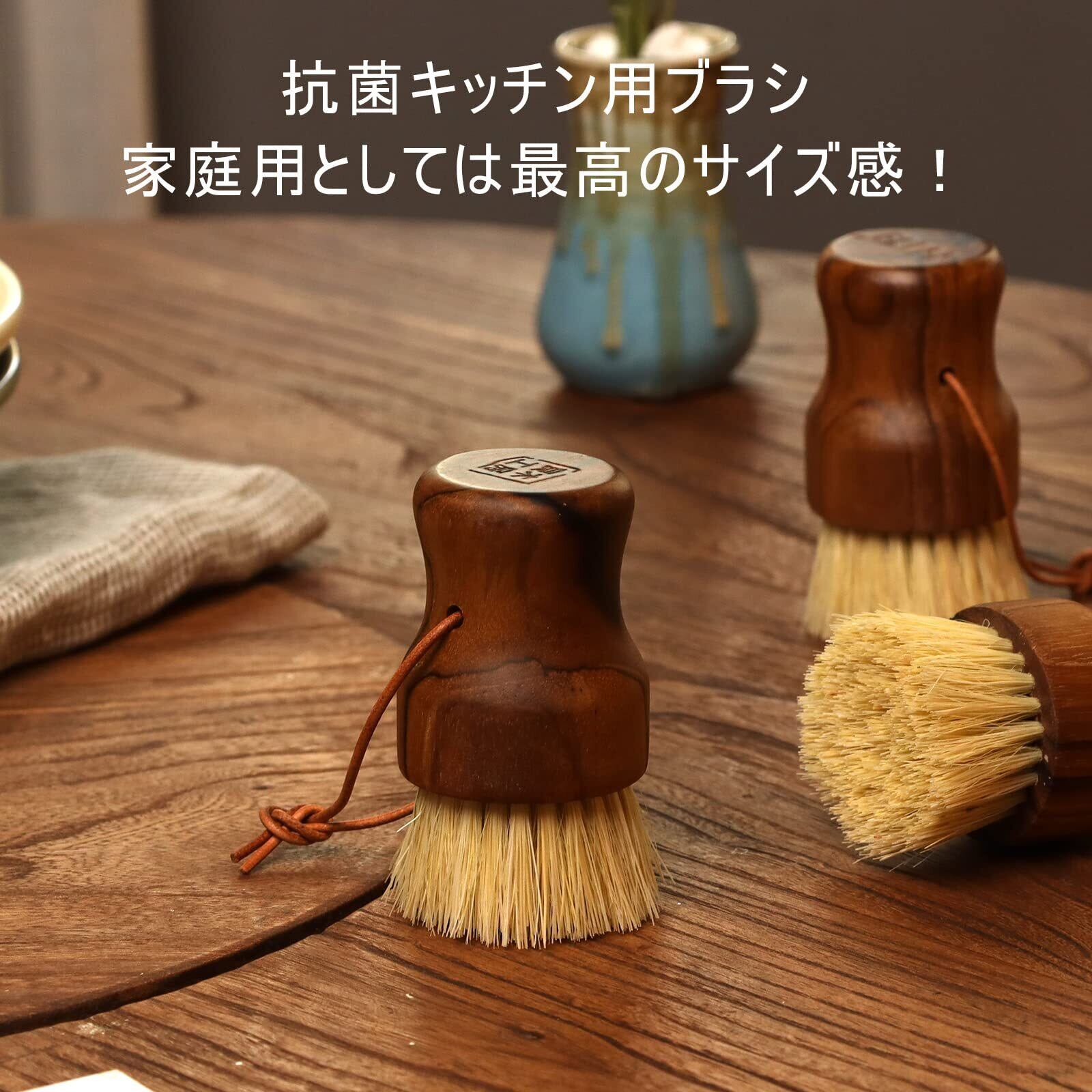 良木工房(YOSHIKI) 木製 キッチン用ブラシ 食器洗い たわし フライパン用 サイザル麻 ブラシ 掃除 鍋 皿洗い ストラップ付き 掛けて 収納 シンク 台所用ブラシ 1個入り SDGs 脱プラ YK-BRJ