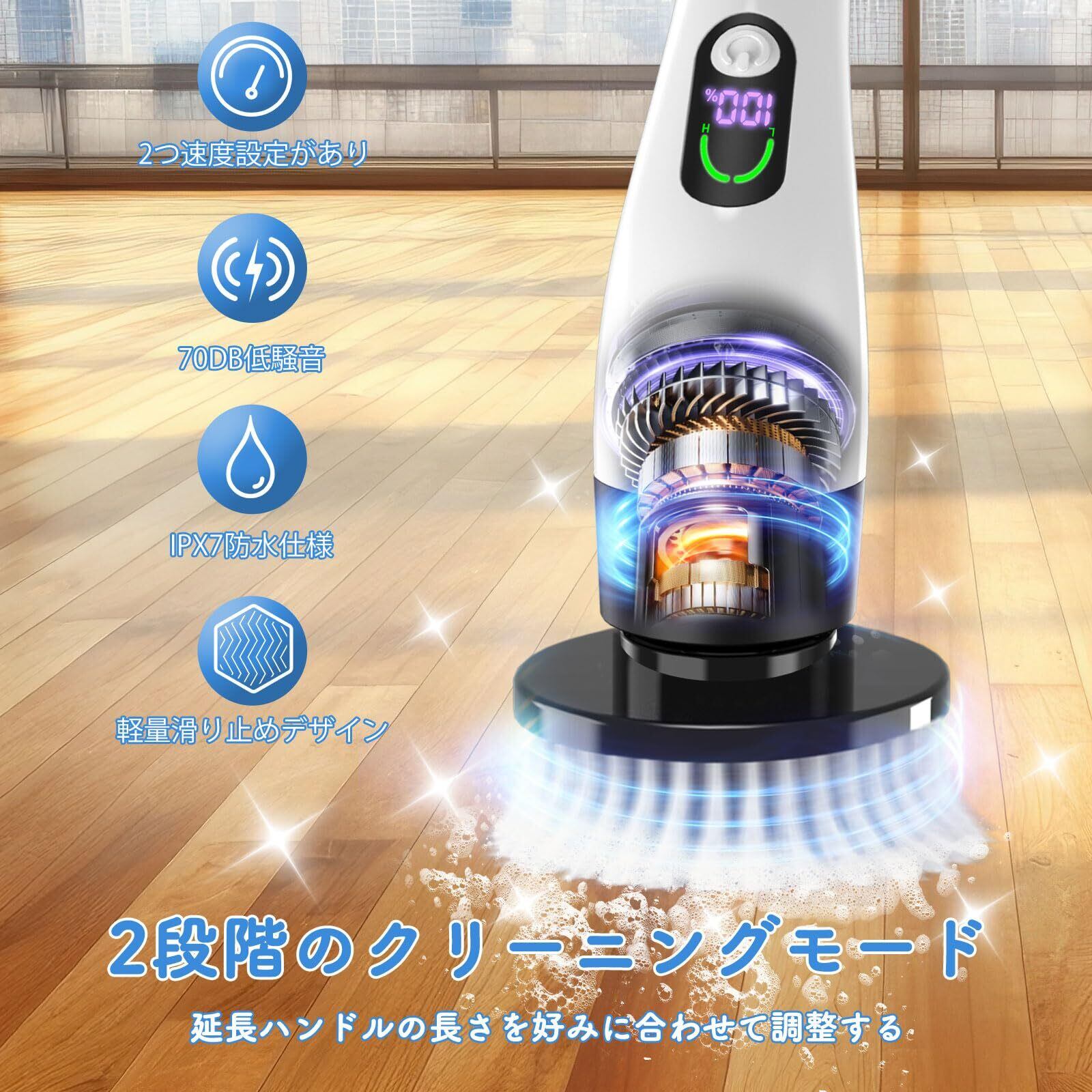 【在庫セール】【 限定】IYGLKD バスポリッシャー 電動お掃除ブラシ 8つ取り替えブラシ付き 90分間連続運転 IPX7防水 大容量バッテリー 長さ伸縮可能 お風呂掃除 ブラシ USB-C充電式 手持ち式 電動ブラシ 軽量 コードレス 電量表示 お風呂掃除 浴室 トイレ 床 窓 壁 自動車 収納袋付き 日本語説明書