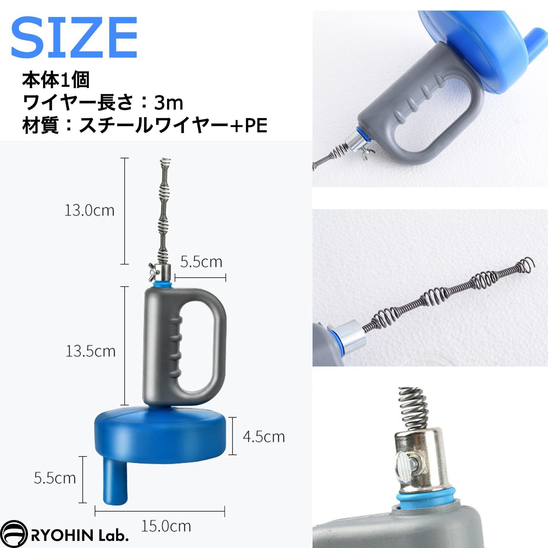 RYOHIN Lab.(良品ラボ) パイプクリーナー ワイヤー 回転式 排水溝 排水管 風呂 キッチン トイレ 洗面所 ゴミ 髪の毛 つまり 解消 4段階スプリング 1個 (3m)