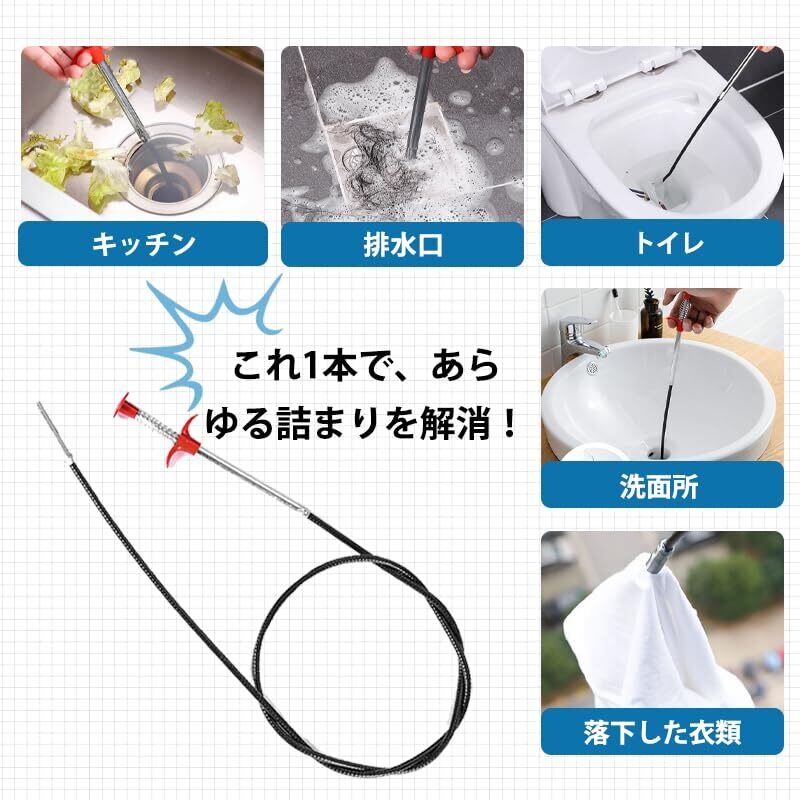 【柔軟に曲がるワイヤー構造】ピックアップツールは柔軟性のあるワイヤー設計で、排水管のカーブや奥行きのある構造にも対応可能です。シンク、洗面台、浴室など、家庭内のさまざまな配管に差し込みやすくなっています。