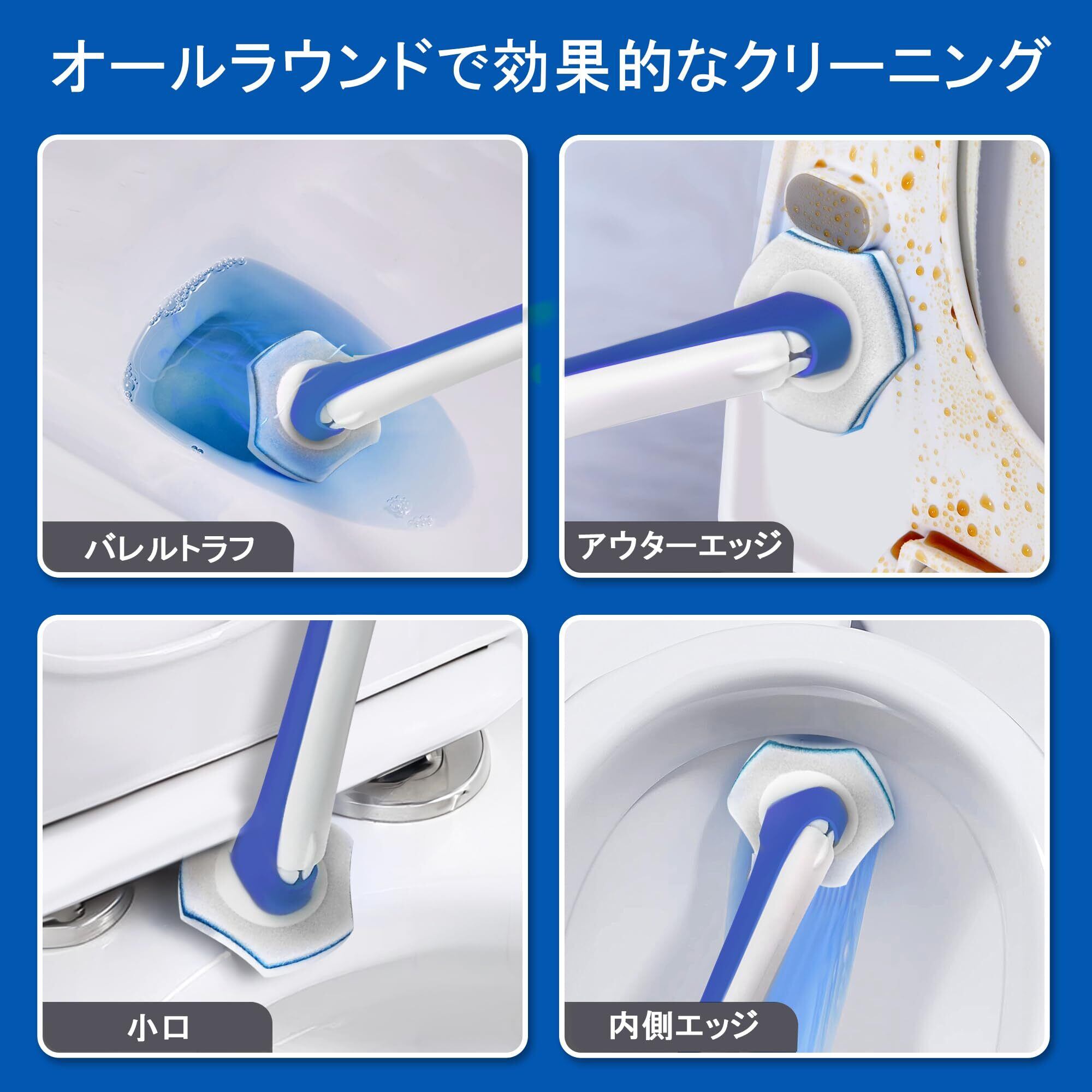多用途:トイレブラシには、トイレハンドル1個、収納キャディー1個、詰め替え用48個、ウォールステッカーが含まれています。トイレ、バスタブ、洗面台、モップ溜め、洗面器、シャワードア、ガラス、床排水溝、鏡の掃除に最適です。