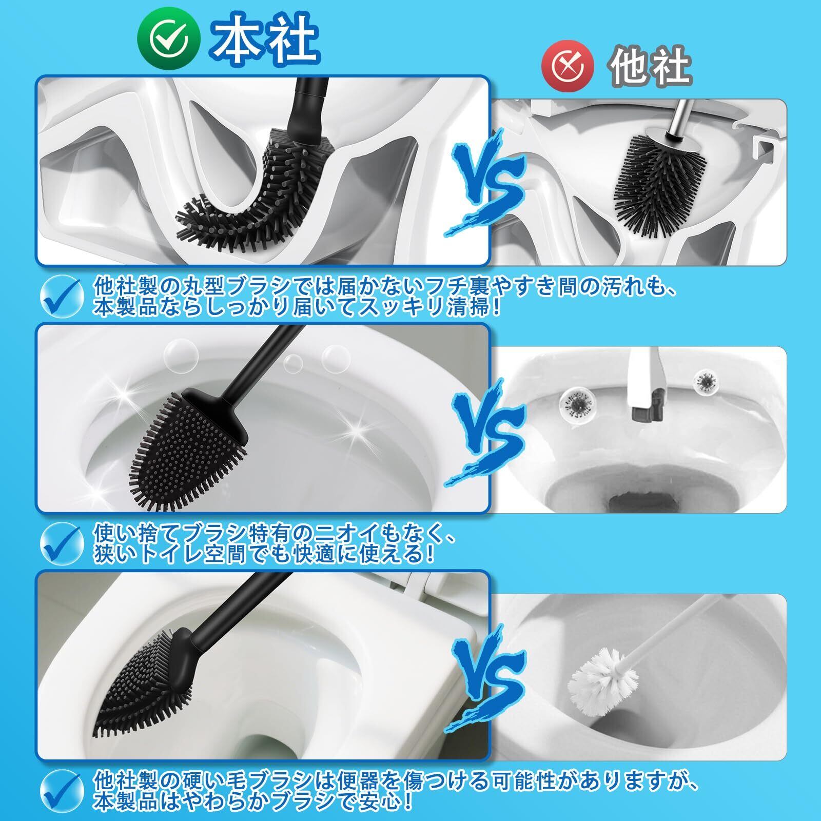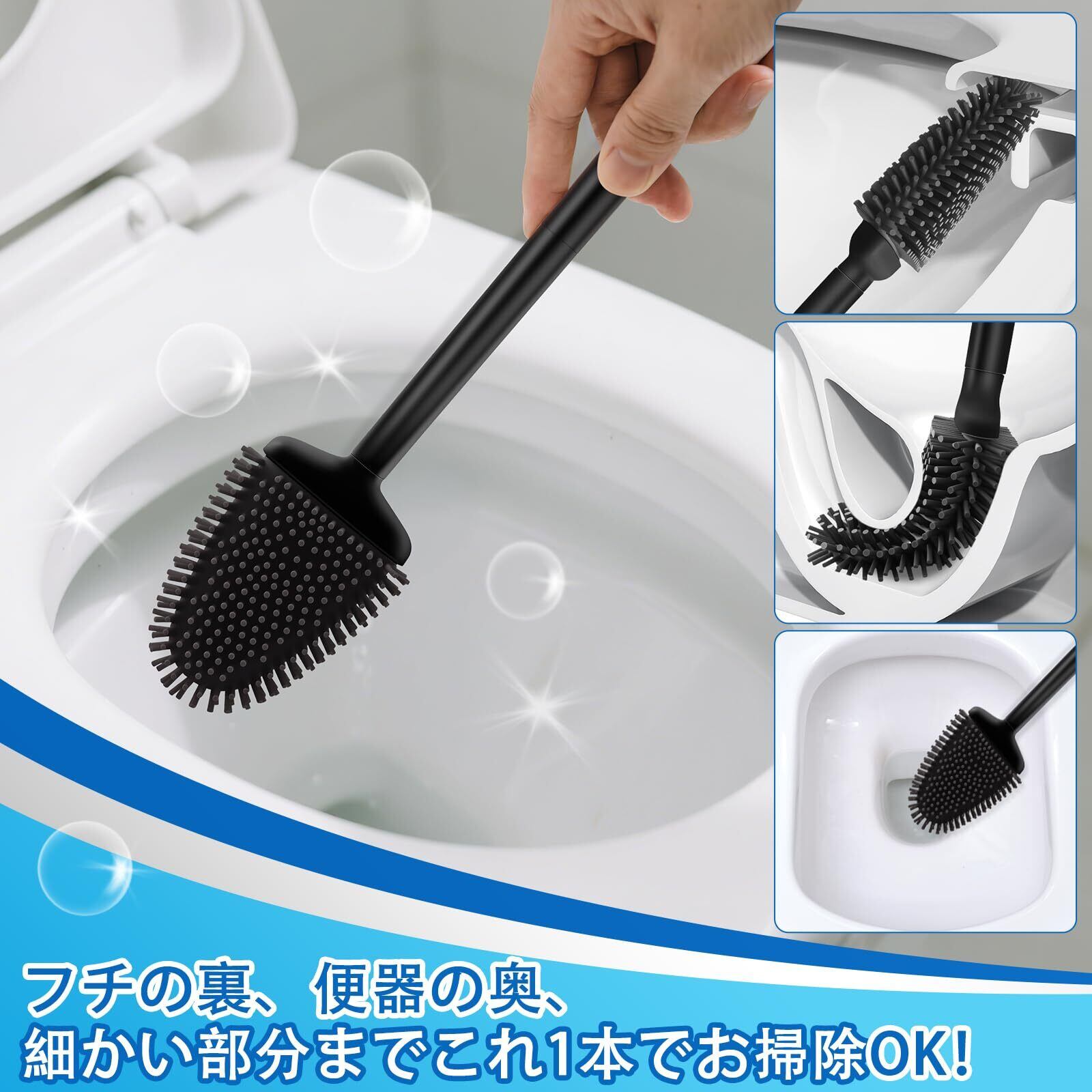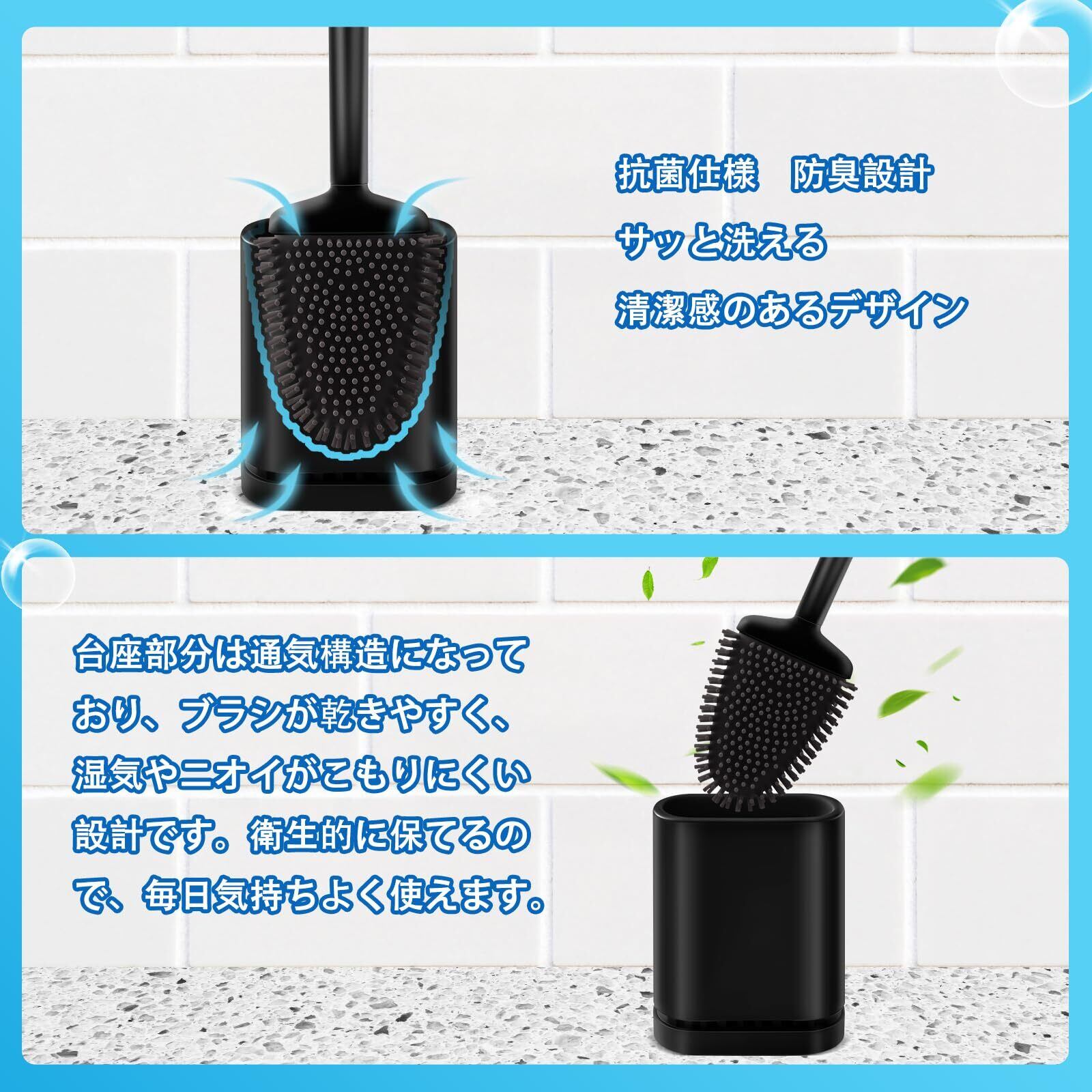 トイレブラシ ケース付き(通気構造) トイレ掃除 ブラシ TPR素材 フチ裏まで届くトイレブラシ お手入れ簡単 速乾設計 衛生的に保てる やわらかヘッドで便器に優しい 乾きやすい通気台座 壁掛け&床置き両対応 省スペース 人間工学設計 おしゃれ(Black)