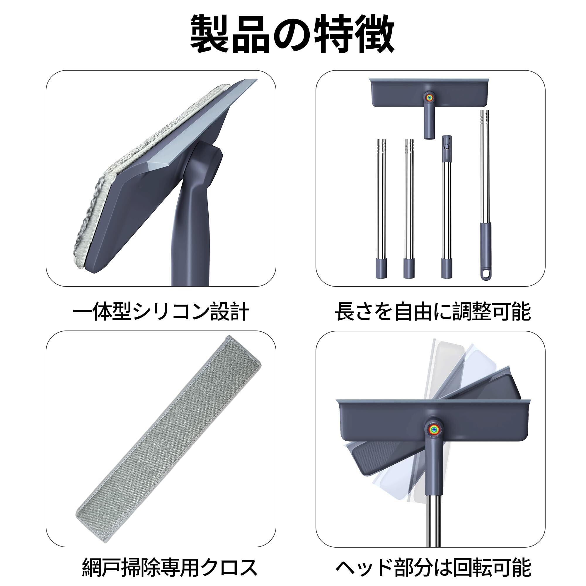 【数量限定】水切りワイパー ガラスワイパー 窓掃除ワイパー 4本継ぎ組み立て式ポール 最長153cm 水切り&清掃クロス一体型ヘッド アップグレード版シリコンブレード 窓 浴室 車 鏡用