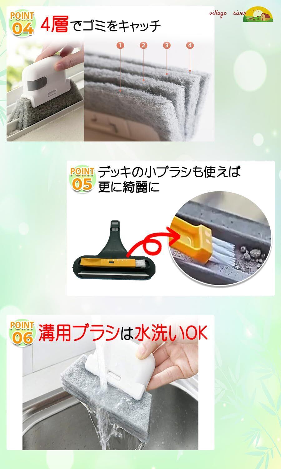 【villageriver】網戸 掃除 ブラシ 窓 掃除 窓拭き 窓掃除セット 溝掃除