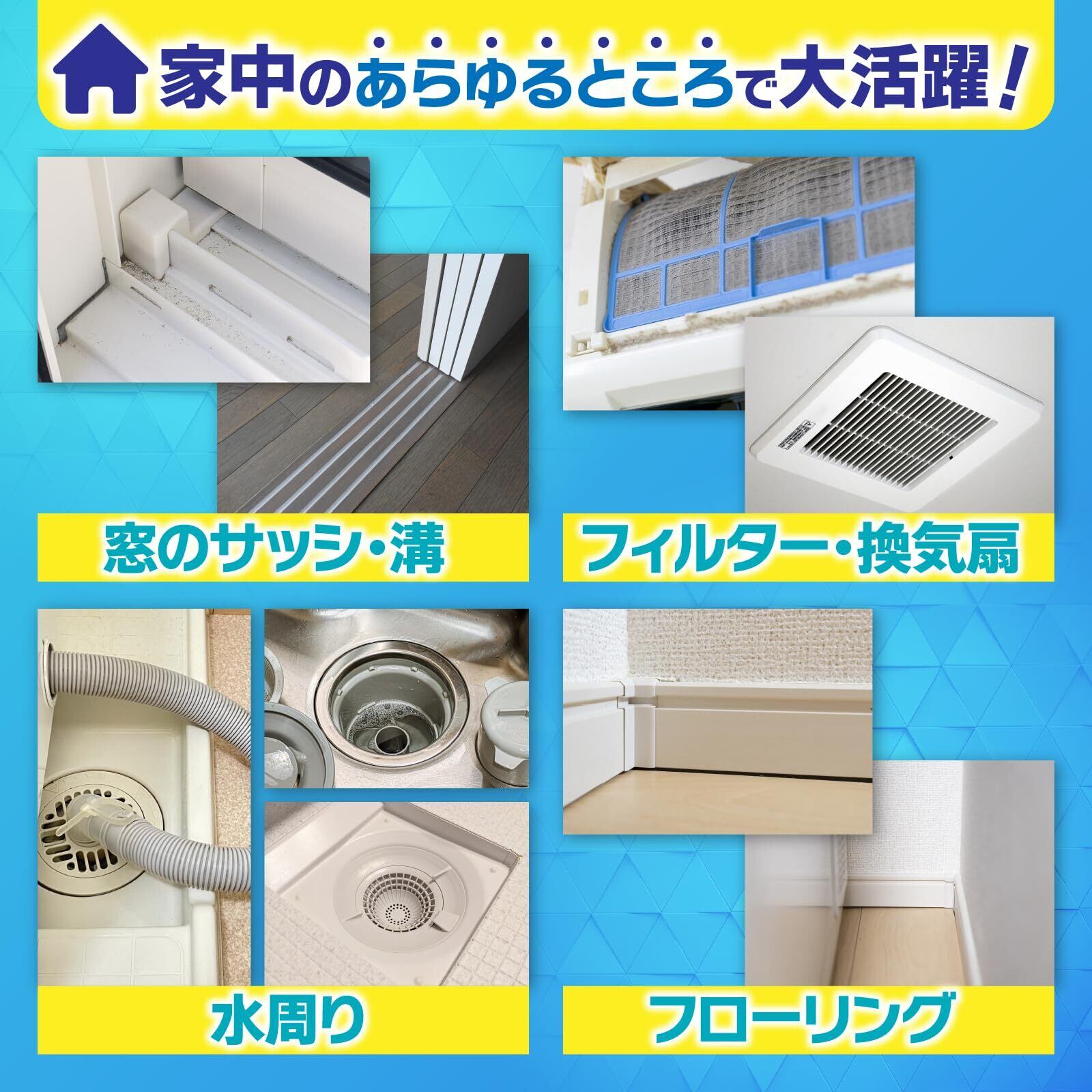 商品用途・使用方法 排水溝, 換気扇, フィルター, 窓サッシの溝, キーボード, 車内, 家電まわり, 家具のすきま, なんとなく気持ち悪い場所