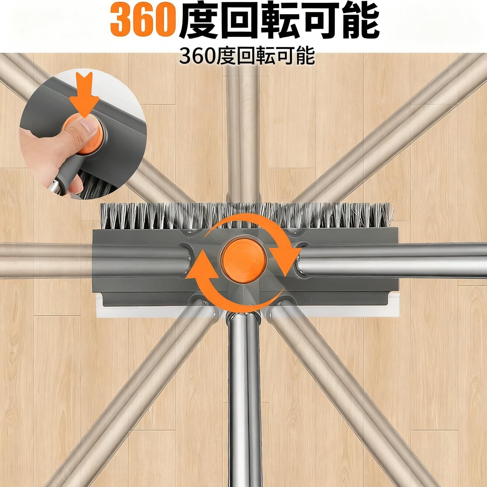 【360°回転ヘッド】ヘッドが360度回転するため、狭くてアクセスが難しいコーナーの清掃にも効率的に対応できます。また、ブラシ毛のクリーニング用ツールも付属しています。
