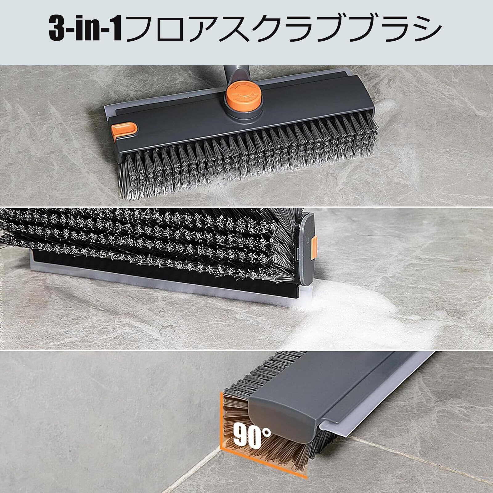 3in1 水切りワイパー タイルブラシ,デッキブラシ 掃除用ブラシ,4段ポール 長さ調節可能 70cm-134cm ベランダ/玄関/床/庭園にも適用 掃除用品 風呂掃除