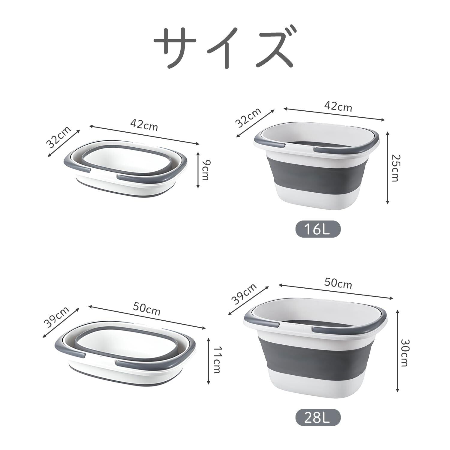 折りたたみ バケツ 16L/28L 大容量 おしゃれ キャンプ 洗濯 洗車 足湯 釣り (灰, 16L)
