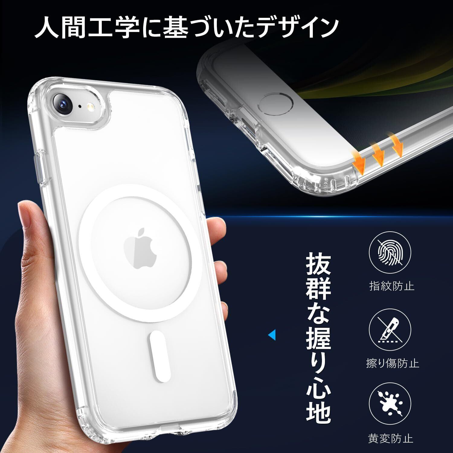 MINIKA iPhone SE3 iPhone SE2 用 ケース Magsafe 対応 スマホケース いPhone SE 第二世代 第三世代 ケース マット感 米軍MIL規格 頑丈 耐衝撃 黄変防止 指紋防止 マグセーフ ワイヤレス充電 マグネット搭載 アイフォン せ2 アイホン せ3 スマホ カバー(クリスタル・クリア)