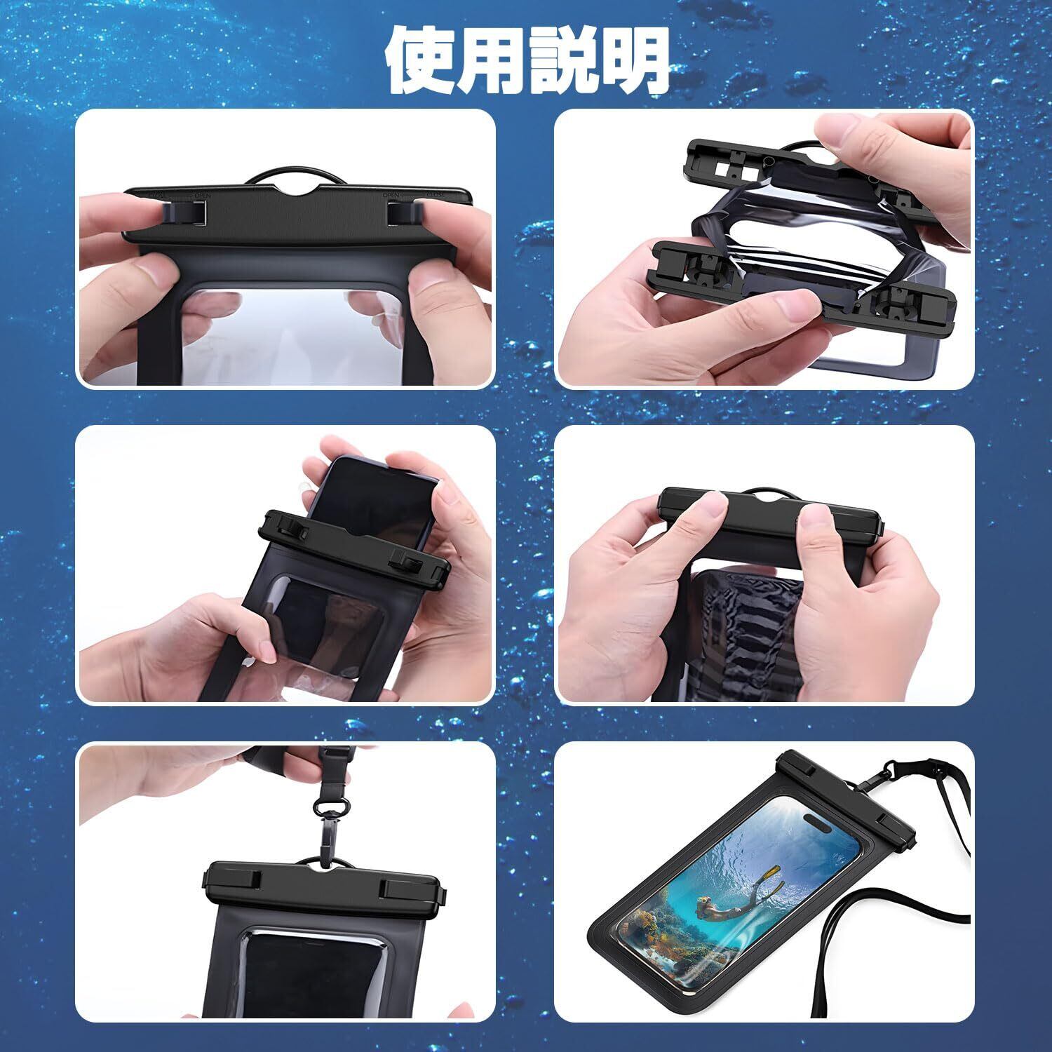 【IPX8認証】 スマホ 防水ケースはIPX8防水で、水深30メートルまで潜り、水中を自由に撮影できます。
