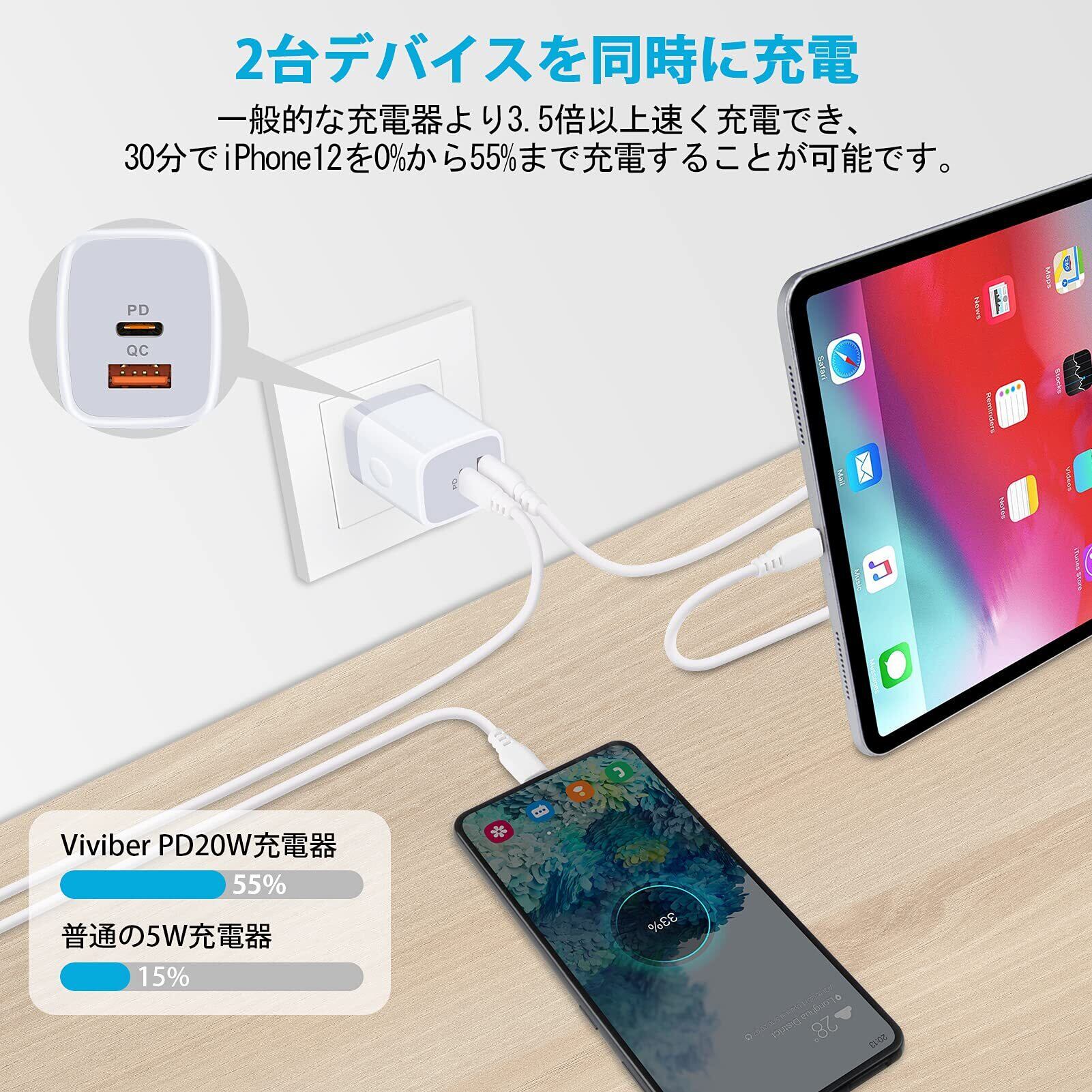 急速充電器 i-Phone16 acアダプター Type-C タイプc 充電器 USB-C電源アダプタ (USB-A&USB-C 2ポート/20W PD3.0/PSE認証) USB c コンセント Phone 16/15/14/13/12/11シリーズ Pad/Xperia/GALAXY/Android等対応