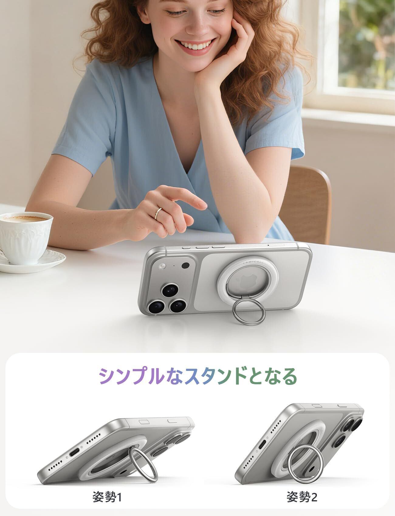 【改良型・360度回転可能】2025マグセーフスマホリングを新登場!Magsafe対応スマホリングは360度回転可能な内部リンクが設置され、装着したままでスムーズに360度回転機能を実現します。りんぐは90度反転と360度回転の仕様で、自分好みの持ち方が使えます。マグセーフリングにはエポキシ樹脂で外側をコーティングし、クリアな透明感と柔らかな光沢で高級感があふれます。