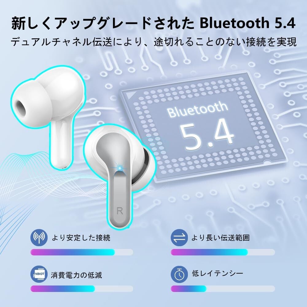 【最新の Bluetooth 5.4 & 瞬時自動ペアリング & 優れた互換性】イヤホン bluetoothは最先端bluetooth5.4技術を採用し、従来に比べて遅延や音飛びを軽減して安定性を向上させました。満員電車など電波がバシバシ飛び交う場所でも安定した通信を実現。瞬時接続技術を採用しており、2回目以降の接続は自動的にデバイスとの瞬時接続が実現されます。複雑な操作は必要ありませんので、初心者の方でも簡単に操作できるbluetoothイヤホン ワイヤレスイヤホンとなっています。