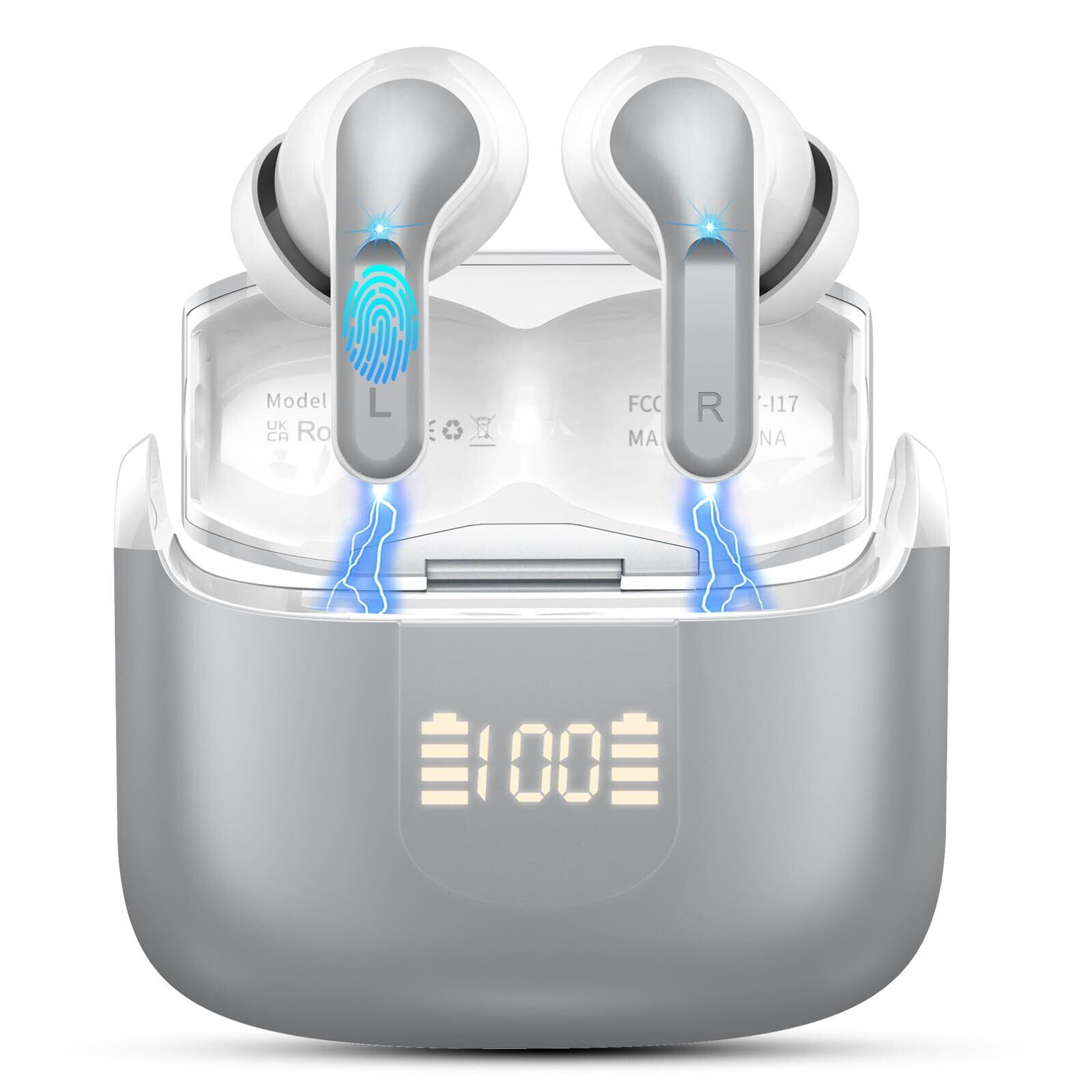 イヤホン bluetooth ワイヤレスイヤホン ENCノイズキャンセリング Bluetooth5.4 自動ペアリング 接続瞬時 IPX7 防水 最大 40 時間再生 HIFI 音質 タッチ操作 LED ディスプレイ Type-C 急速充電 小型/軽量 マイク付き iPhone/Android/Pad 適用 スポーツ/WEB 会議/通勤/通学/音楽用 (グレー)