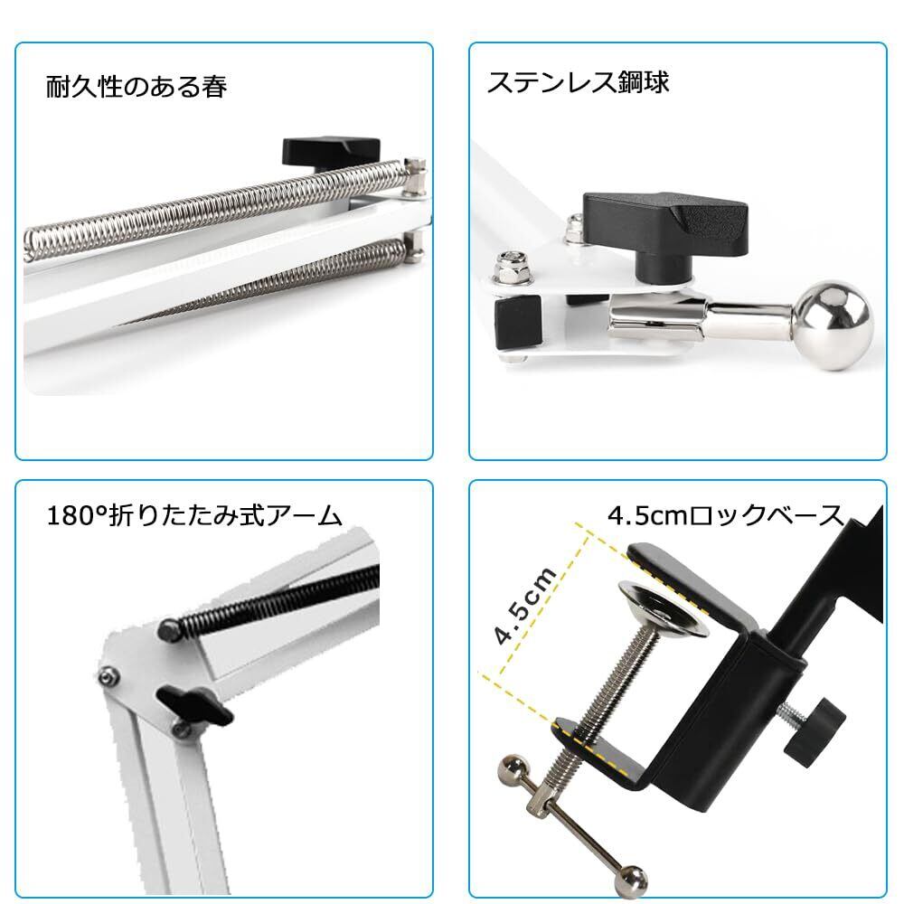 マウントは頑丈で調整可能なスチールアームを備えた機能であり、耐久性と簡単な安定性をし、揺れのないグースネック設計よりも正確で安定した位置決めを提供します。