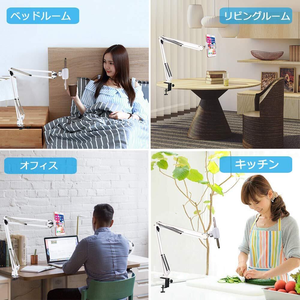 【360度回転/調整】360度回転可能なボールを使用し、腕の調整が簡単です。携帯電話を使用して、寝室、バスルーム、キッチン、ジム、オフィスで映画を見たり音楽を聴いたりするのに最適です。