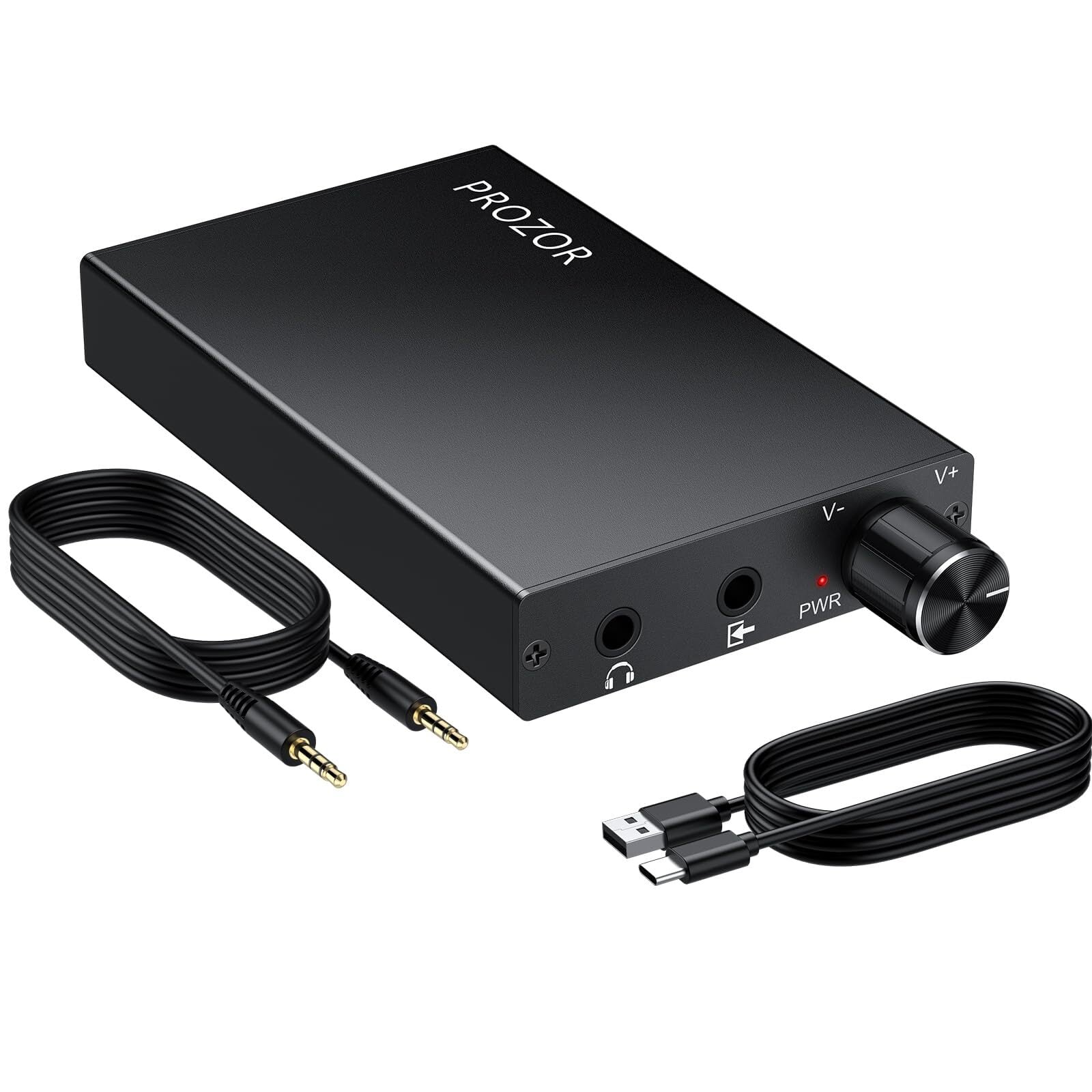 PROZOR ヘッドホンアンプ ポータブル HIFI 16~300Ωヘッドフォン対応 ハイレゾ対応 2段階ゲインスイッチ 音量調整 8時間以上動作 3.5mm入力/出力 アルミ合金外殻 MP3/MP4/携帯電話/パソコンなど対応 オーディオケーブル 日本語説明書付き