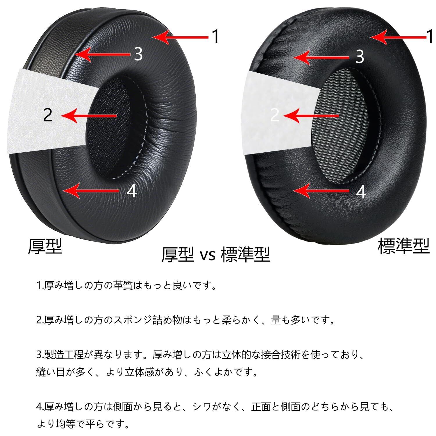 【材質特性】1.高反発スポンジとプロテイン表皮の複合材質を採用2.柔らかな肌触りで耳の輪郭にフィットし3.長期間使用しても変形しにくい設計.
