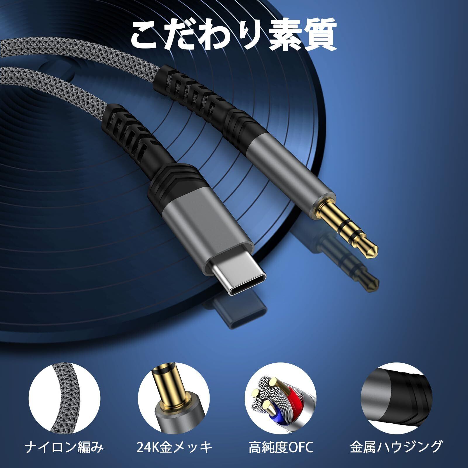 タイプC AUXケーブル USB C-3.5mm オーディオケーブル オス-オス1M type-c to 3.5mm音声ケーブルイヤホンジャック 変換 タイプc ステレオミニプラグ ヘッドホン カーステレオ 高耐久性ナイロン編み Hi-Fi音質 24K金メッキコネクター スマホ/Android/iPhone17/16/15/Macbook/ヘッドホン/イヤホン/スピーカーに対応