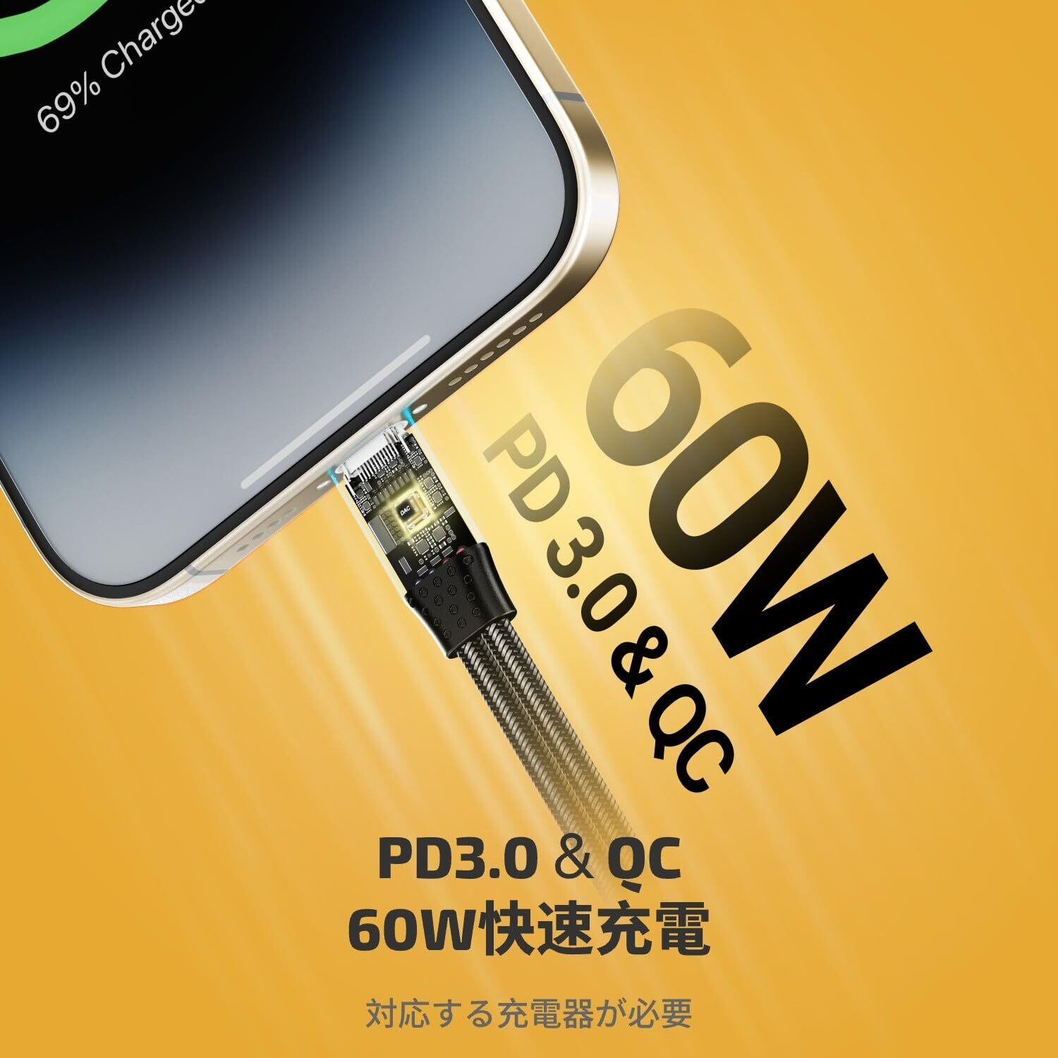 60WのPD急速充電に対応-このタイプc イヤホン 変換アダプタと充電器は、最大60WのUSB C PD急速充電をサポートしています。強力な急速充電チップを内蔵しており、安定した充電電圧と電流を提供し、デバイスをしっかりと保護します。なお、高速充電を実現するためには、PDウォールチャージャーの使用をお勧めいたします。