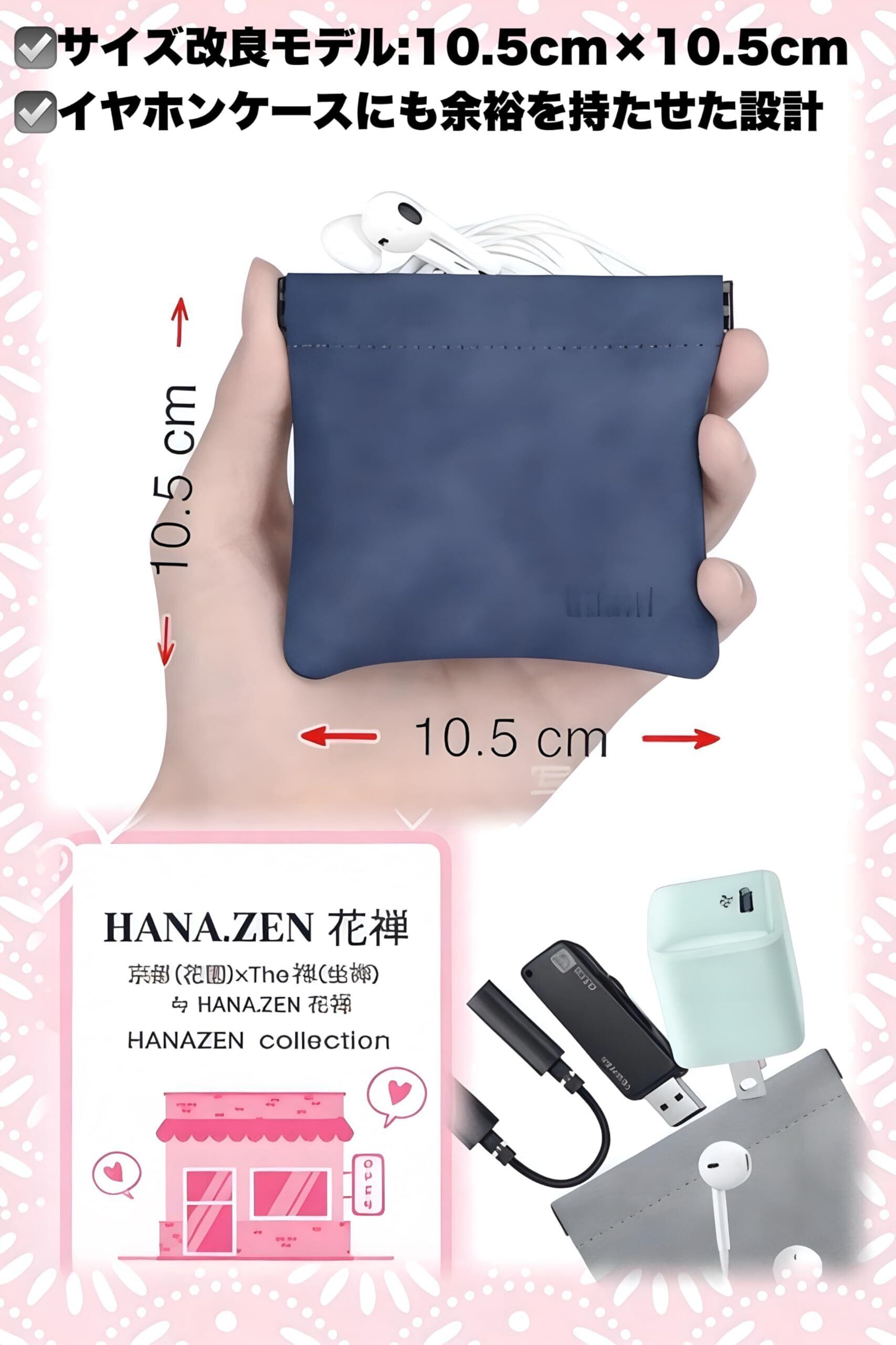 【特価セール】花禅 BUBM イヤホンケース 有線対応 イヤホン収納ケース ヌバックソフトレザー 撥水加工 ステンレス金具 內部ベルベット 10cm開口 (ダーク ブルー W:10cm)