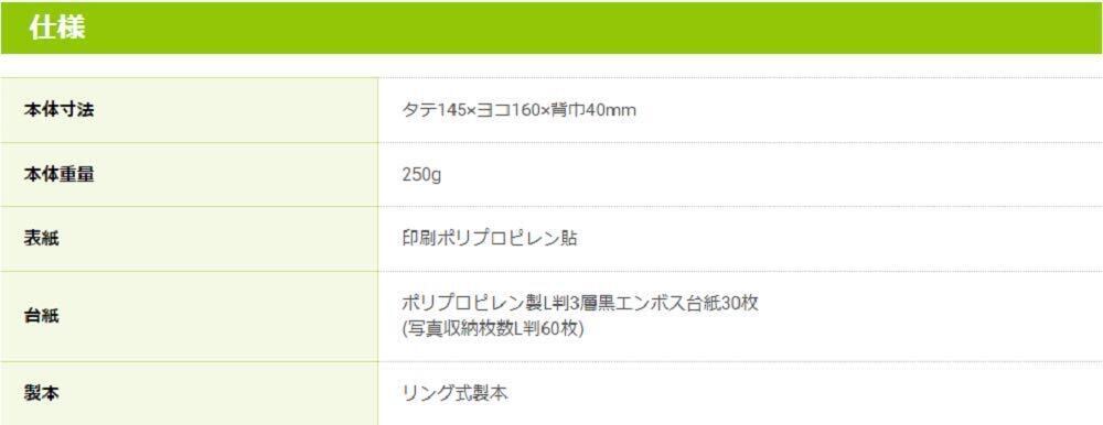 ●台紙:ポリプロピレン製L判3層黒エンボス台紙30枚(写真収納枚数: L判60枚)