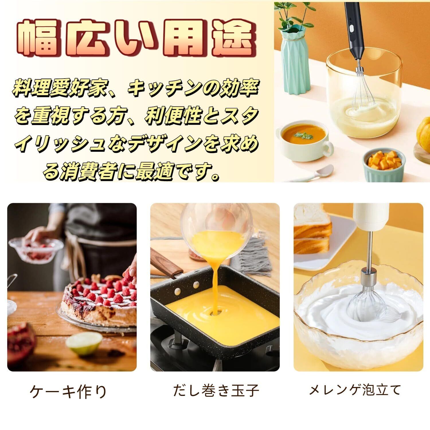 ハンドミキサー 泡立て器電動 【2026新登場・3段階スピード調整】 お手入れ簡単 電源コード 超軽量 長時間連続駆動コードレス 離乳食 カプチーノ 卵 生クリーム コーヒーメレンゲに対応(ホワイト)