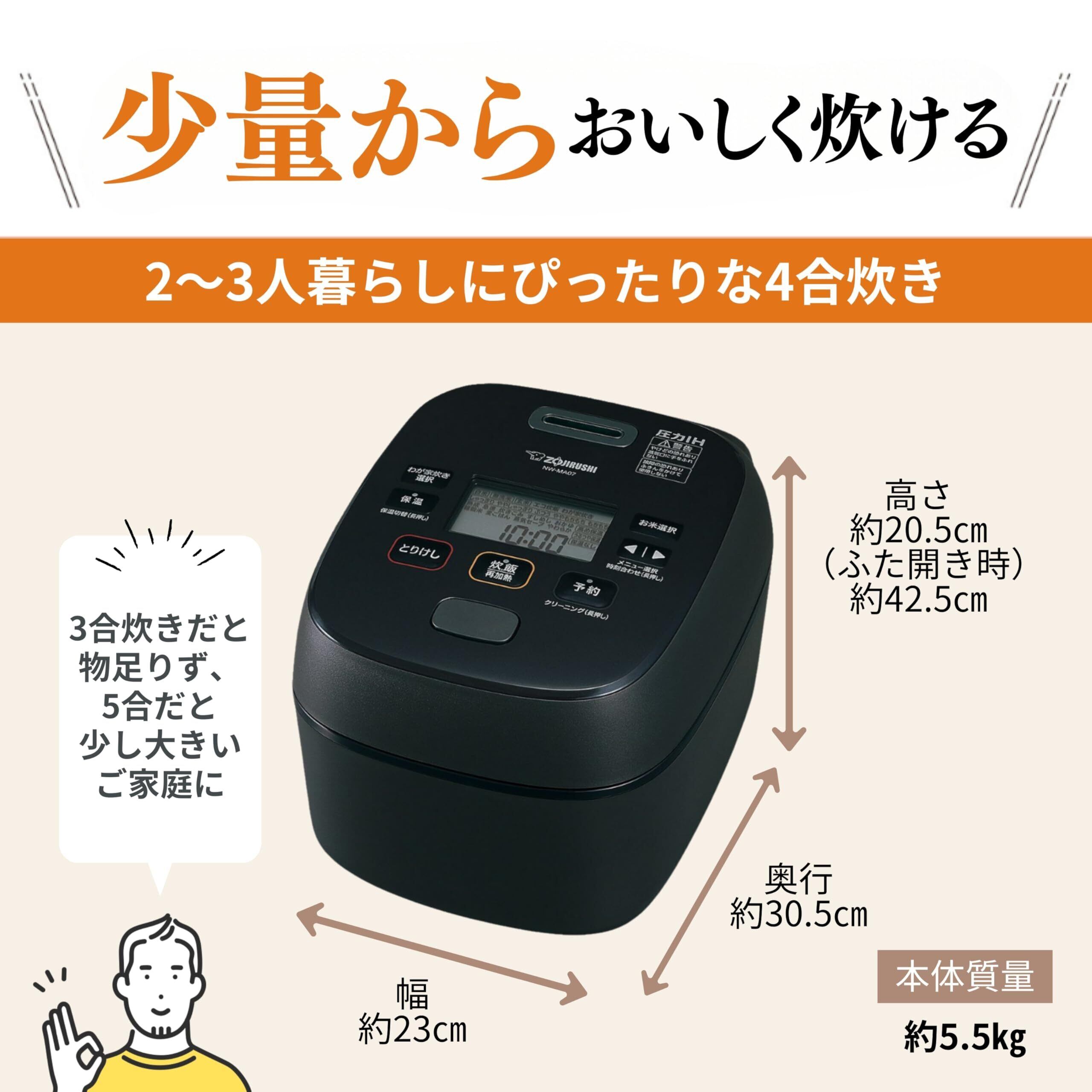 象印マホービン 炊飯器 4合 小容量 極め炊き コンパクト 圧力IHタイプ 日本製 お手入れ点数2点 ブラック NW-MA07-BA