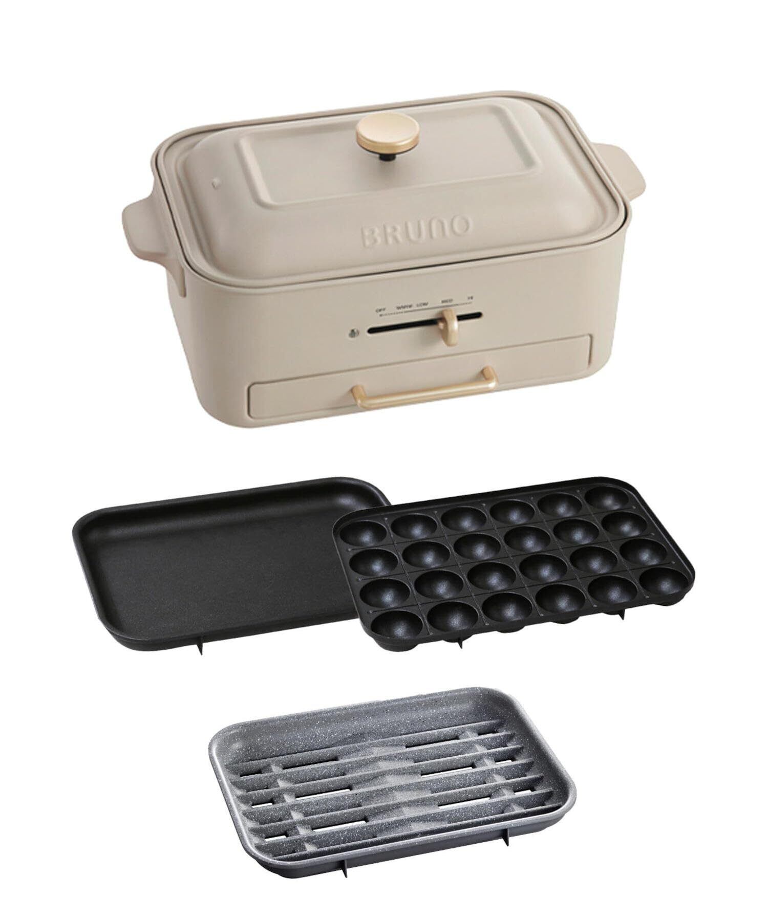 【新着商品】BRUNO ブルーノ コンパクトグリルホットプレート 減煙 煙が出にくい 焼肉グリル 焼肉プレート おうち焼肉 平面プレート たこ焼きプレート 減煙グリルプレート グレージュ BOE109-GRG