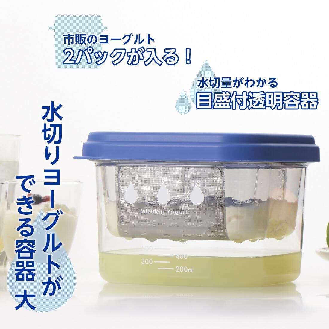 ペーパーフィルターを使わず水切りできるので経済的です。容器には固さの目安になるホエー(乳清)の抽出量が確認できる目盛付き。