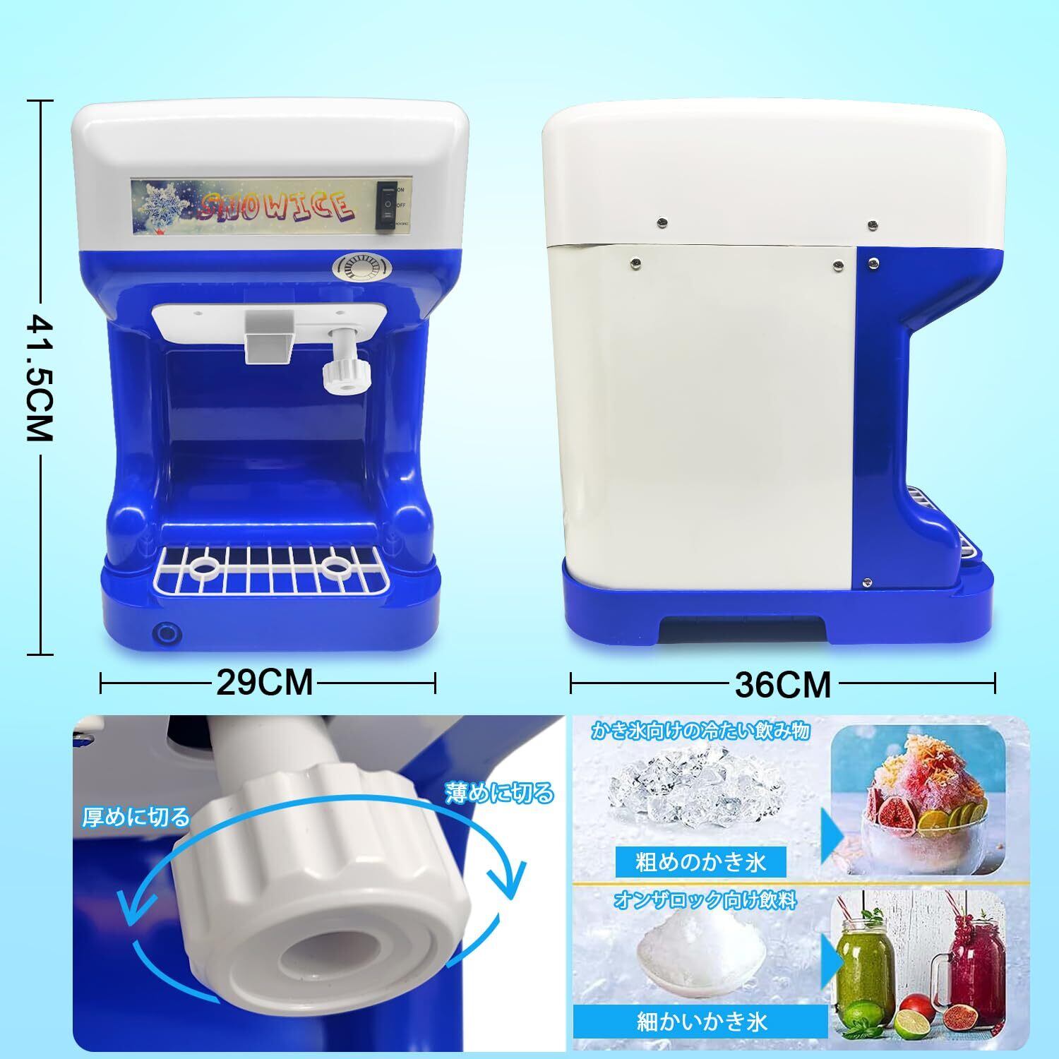 【調整可能な氷の粗さ】ブレード調整ノブを備えているため、氷のテクスチャを簡単に調整して、さまざまな冷凍のおやつを作成できます。