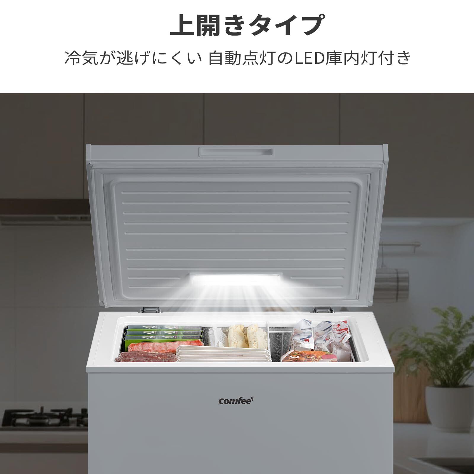 COMFEE' 冷凍庫 99L 小型 上開き 温度調節6段階 大容量冷凍 省エネ ストッカー 家庭用 RCC100WH(E) ホワイト