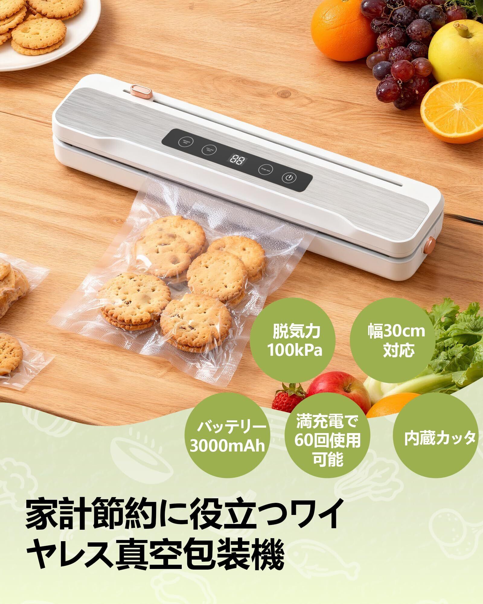 真空パック機 フードシーラー 100kPa 強力脱気 30cmシール 食材保存 真空機 操作簡単 軽量コンパクト 露营用 家庭用 充電式 高耐久性 乾湿両用 真空 パック機 フードセーバー 低騒音 軽量 コンパクト お手入れ簡単 防水洗浄タンク日本語説明書 専用袋10枚付き