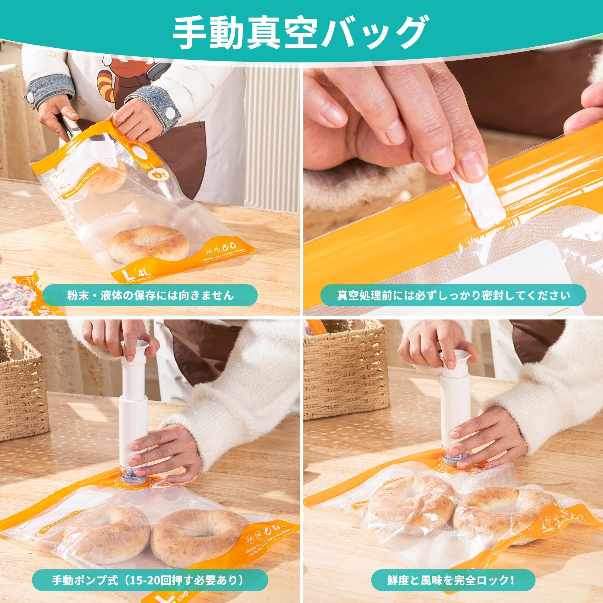 【完全真空密封】再利用可能真空シーラーバッグ,真空状態で食品の劣化・酸化・腐敗を防止,食材の鮮度を3~5倍に延長,色・味・風味をまるで新鮮な状態のまま保存。