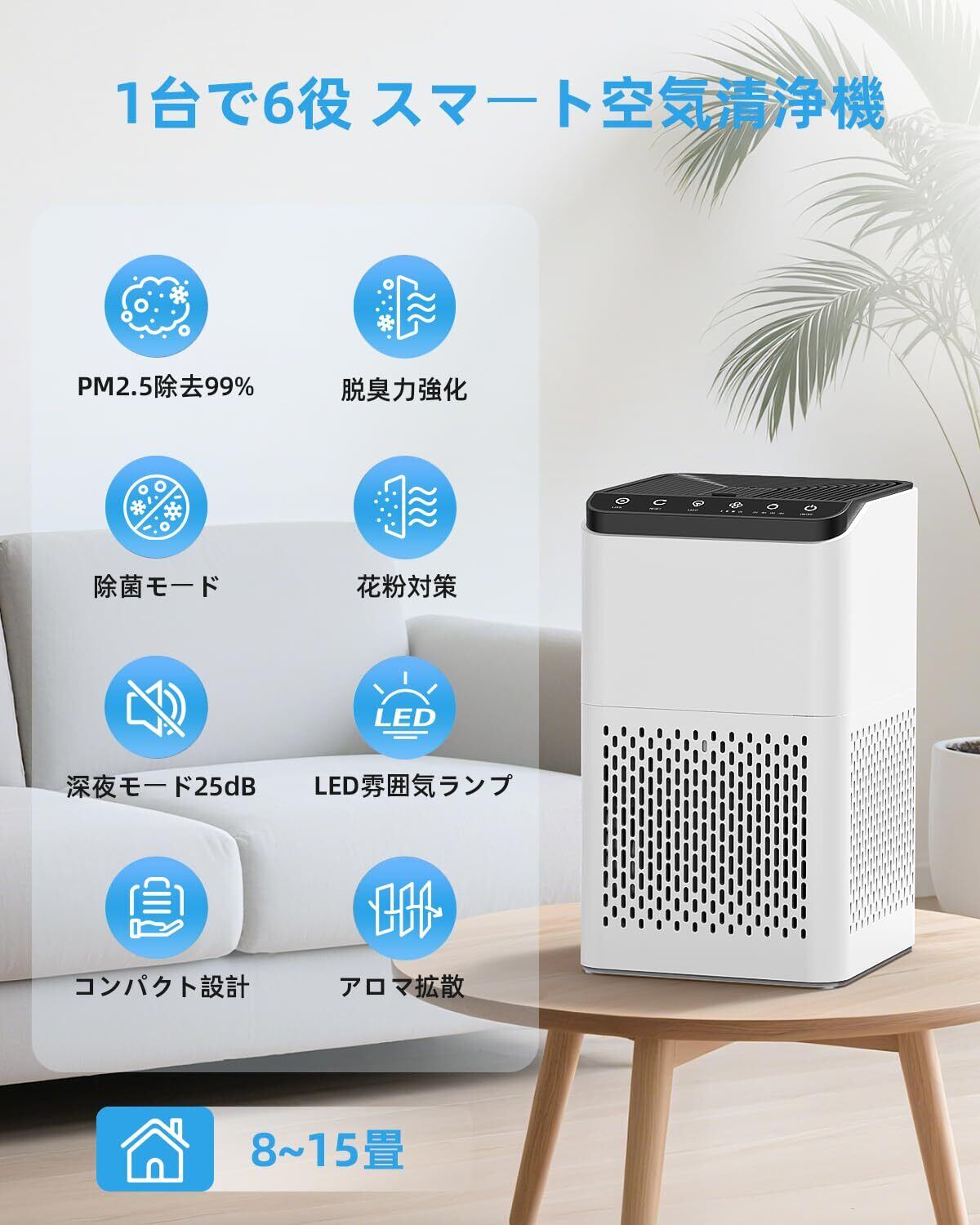 【2025革新版フィルター・3重ろ過・6-16畳対応】空気清浄機は、多機能型3重濾過システムを搭載した小型最強モデルです。HEPAフィルター面積を従来型比2倍拡大し、集塵・除菌・脱臭・花粉対策の性能を飛躍的に向上させます。PM2.5・ウイルス・雑菌など99.9%除去率を実現し、8畳の部屋では15分で極速浄化。6畳から16畳まで広い対応範囲で、気持ちの良い清潔な空気を毎日提供します。