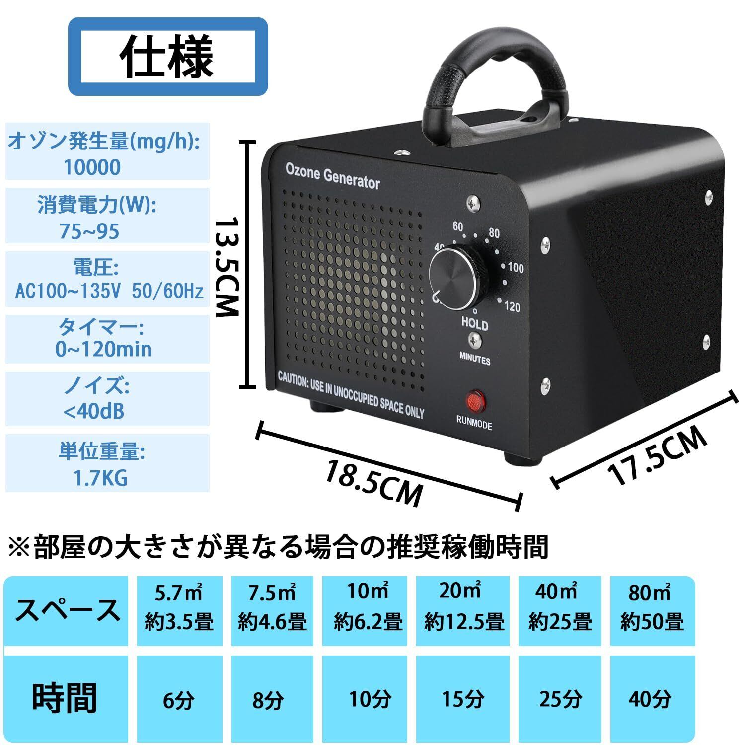 オゾン発生器 業務用オゾン脱臭器 120分タイマー 家庭用 省エネ 静音 脱臭装置 消臭 日本語説明書付き (10000mg/h)