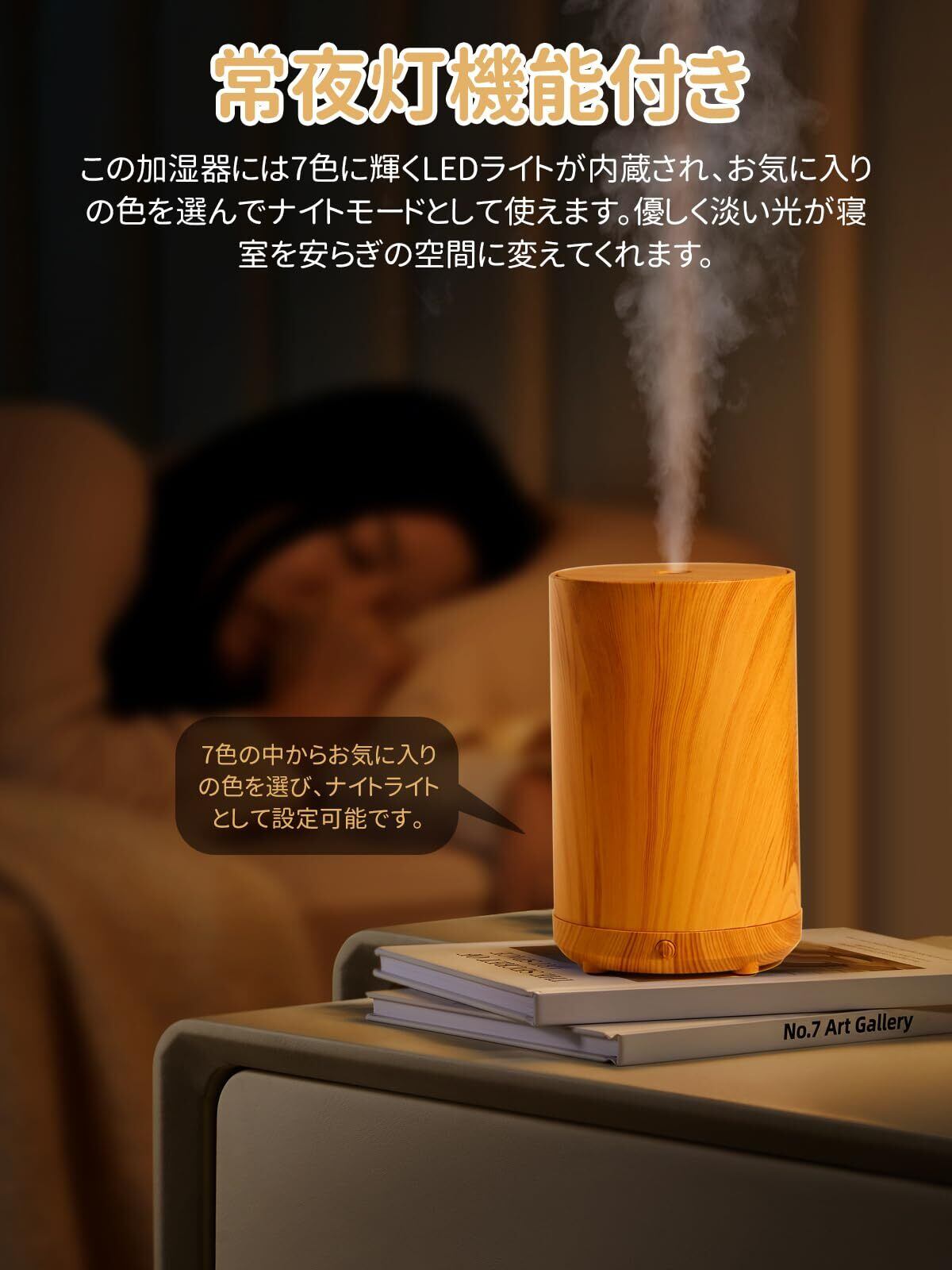 特徴 アロマディフューザー, ナイトライト, 漏れ防止, 自動シャットオフ, 静粛性