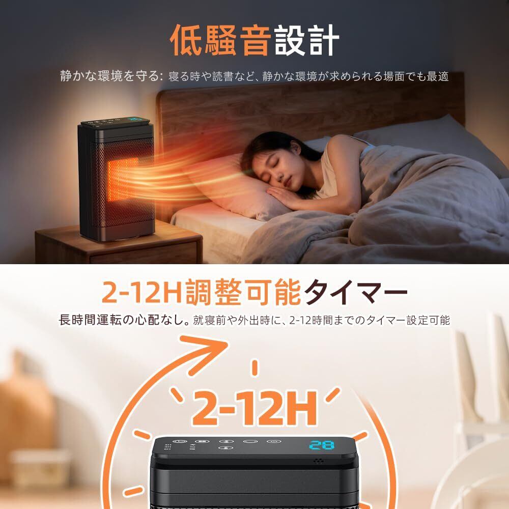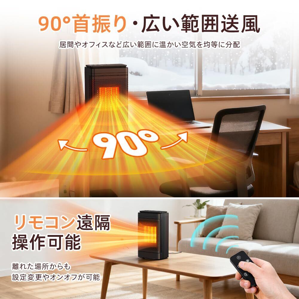 【人気商品】【2026新登場 瞬間速暖】 セラミックヒーター 首振り 電気ファンヒーター 足元ヒーター 速暖 大風量 立体送風 暖房 省エネ 12hタイマー 転倒OFF 液晶ディスプレイ 窓下結露対策 寒さ対策 寝室/トイレ/洗面所/脱衣所/オフィスに適用 (ブラック)