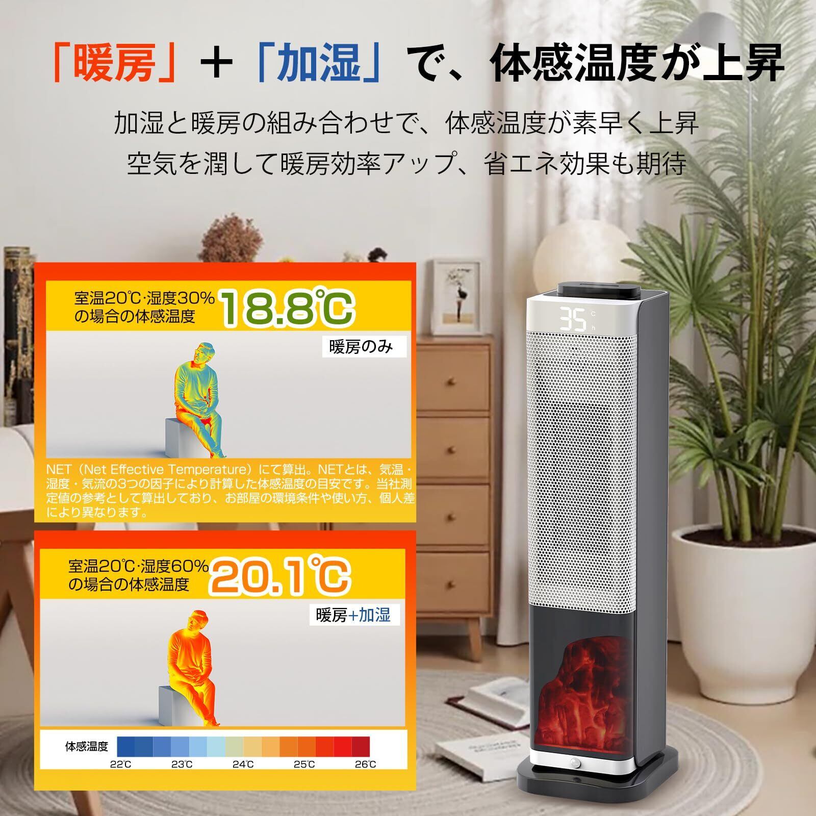 【潤い加湿で乾燥知らず】セラミックヒーター暖房による肌や喉の乾燥を防ぐ超音波加湿機能付き電気ファンヒーター。暖めながら適度な潤いを保ち、美容や健康もサポートします。エアコンの乾燥が苦手な方、子ども部屋や寝室での使用にも最適。風邪予防や快適睡眠、冬の乾燥対策もこれ一台でOK。セラミックヒーターの温風と加湿が同時に働くので、冬の生活をより快適にします。