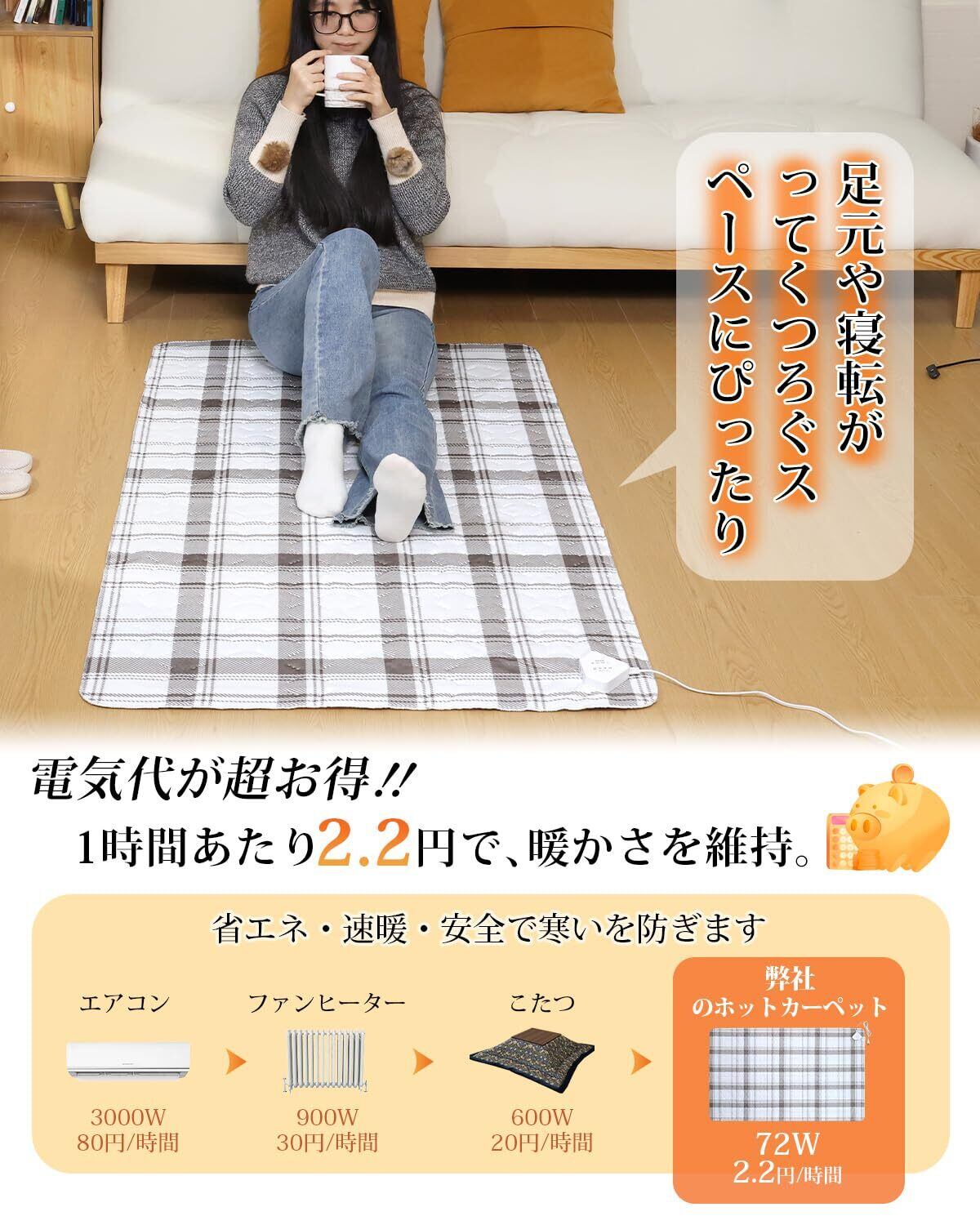 【暖かく肌触り・しわやよれやずれ防止】織り方も独自の工夫をしています、高密度加工により、ずっと柔らかな状態を保つことができます。柔順で暖かく肌触りが良いで電気敷き毛布特有の毛玉ができる心配もなく長く使えます。通常の敷き毛布よりも厚みがあり、適度な重量感もあり、これにより、寝返りを打っても身体からずれにくく、安定した気持ちよい睡眠を得られます。また、こたつと併用時、冷え込みが厳しくない時期はカーペットだけでも十分暖が取れます。