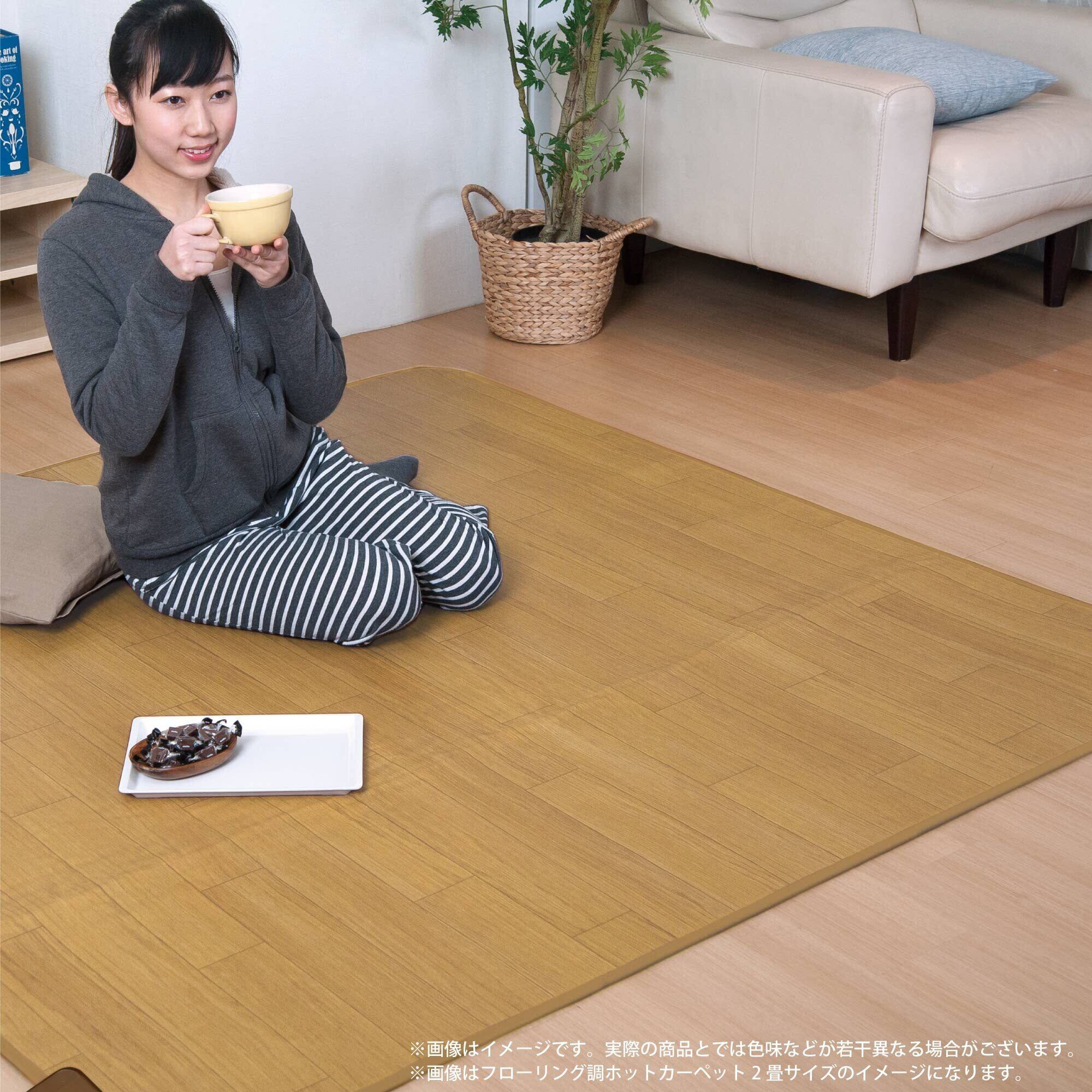 【フローリングの床にも合うライトベージュの木目調柄】電気カーペットの表面は、フローリングの床にも合う木目調の柄となっております。
