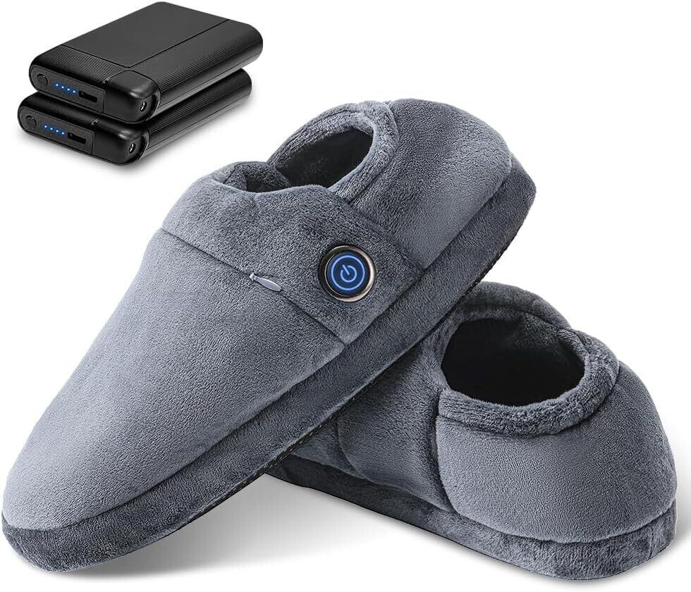 【在庫処分】【5秒で感熱!歩き回れる電気足温器】 電気スリッパ コードレス 両面発熱 足温器 2個バッテリー付き(8000mAh) フットウォーマー 3段階調整切替 45-65℃温度調節 NTC温度制御 暖かい 柔らかい 滑り止め 移動可能 軽量 洗濯可能 防寒対策 男女兼用 室内 自宅/職場用 日本語取扱説明書付き (アッシュグレー, L)