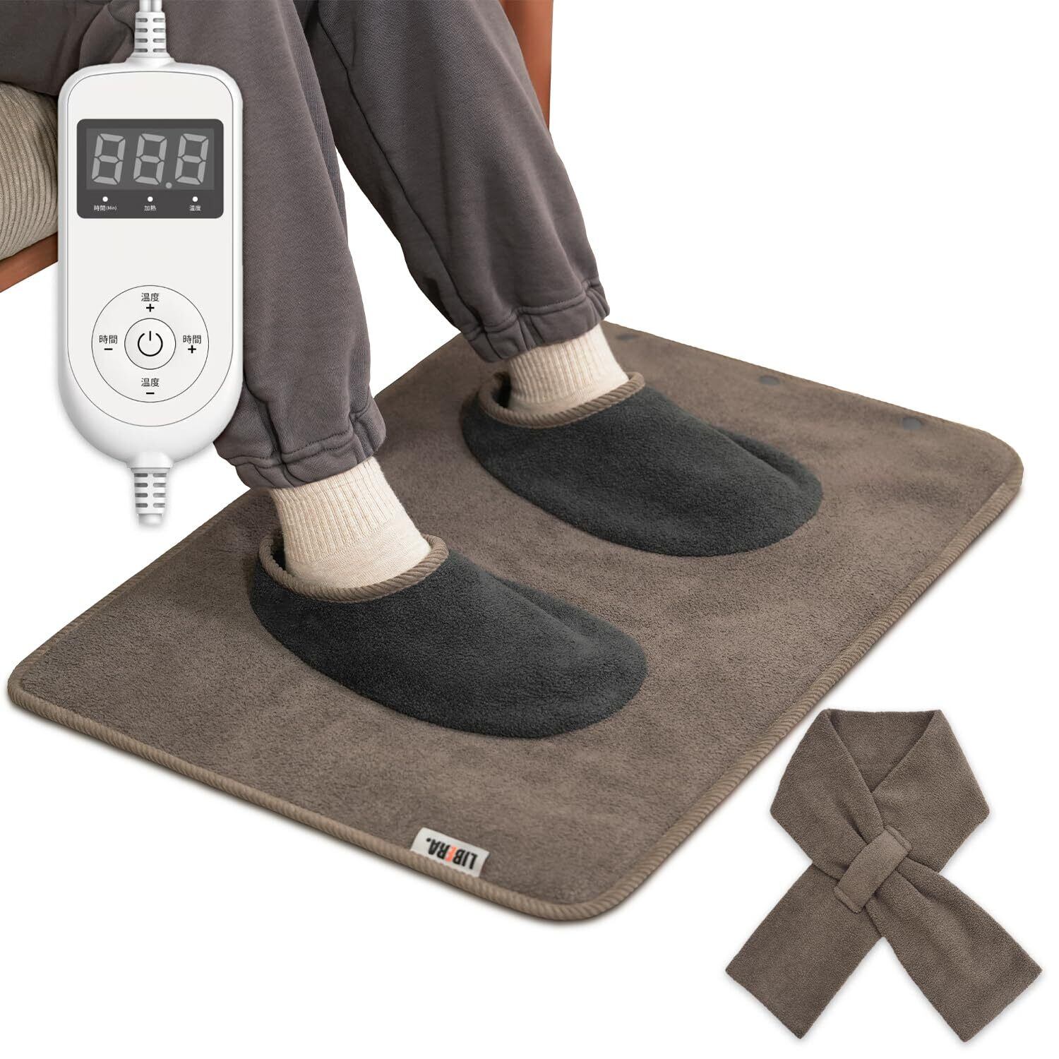 【2022最新】【特典マフラー付き】LIBERA. ミニホットカーペット 洗練デザイン ポカポケット設計 足・手を温める2WAY仕様 電気足温器 ハンドウォーマー 60×40cm 速暖・省エネ 5段階温度調節(40〜60℃) タイマー付き(モカトープ)