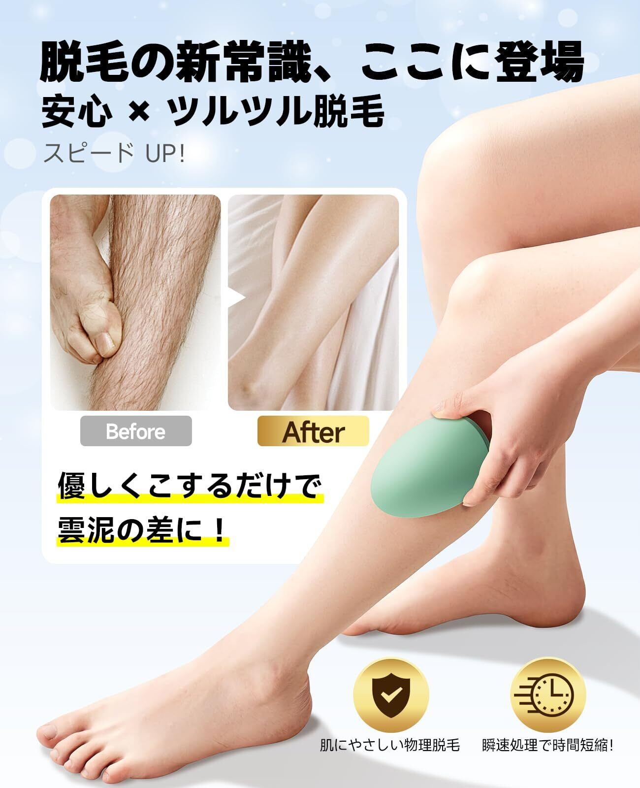【完全無痛!肌への刺激なしの新世代ナノ脱毛技術】最新のナノガラス技術を採用し、化学成分ゼロでお肌に優しい設計。軽く円を描くようにこするだけで、ムダ毛を痛みなく除去できます。ワックスやカミソリのような刺激や黒ずみも残さず、敏感肌にも安心。サロン要らずで、手軽にすべすべ肌を実現できます。※同じ箇所を長時間使用しないでください。