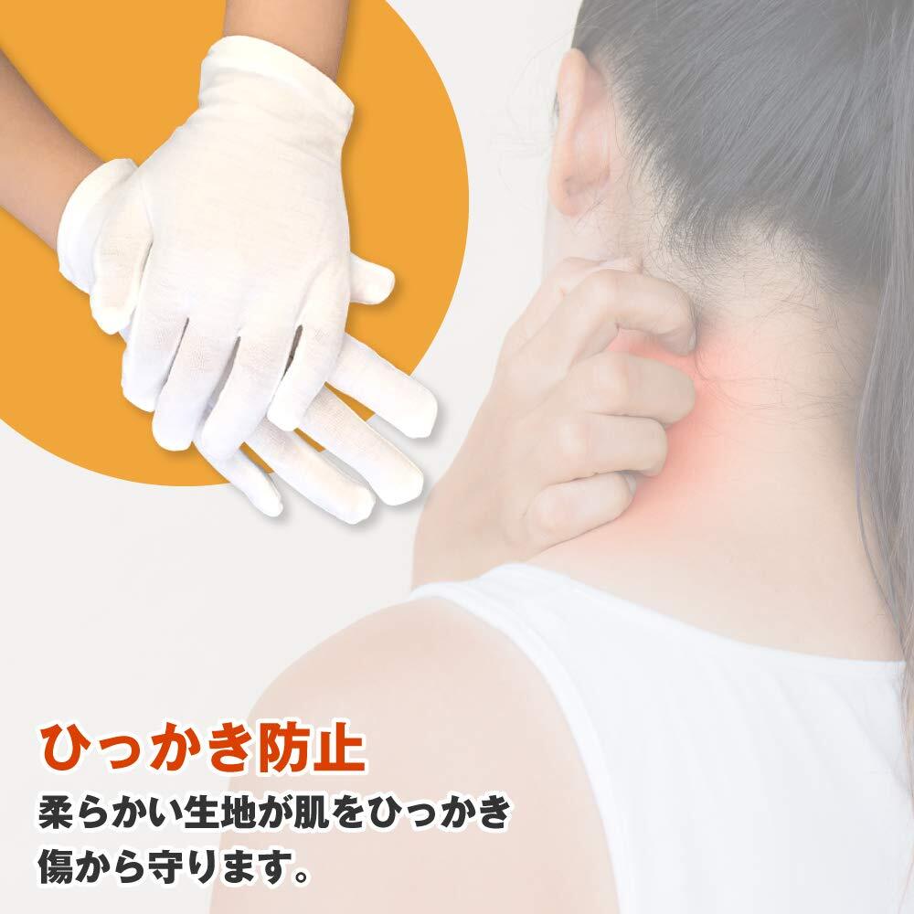 手触りが気持ちよくごわつきにくいコットン素材。冬の乾燥する時期のかきむしり防止やクリームを塗った後の保護にも使えます。