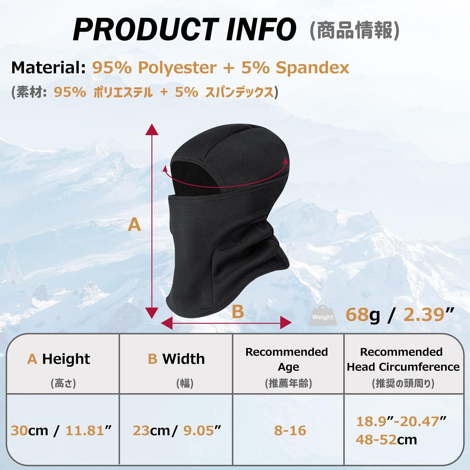 【伸縮性】- 伸縮性のある生地でほとんどの頭の形にフィットし、立体的な設計により、頭部により適合しており、暖かく保ち、男の子にも女の子にもぴったりの冬用目出し帽です。