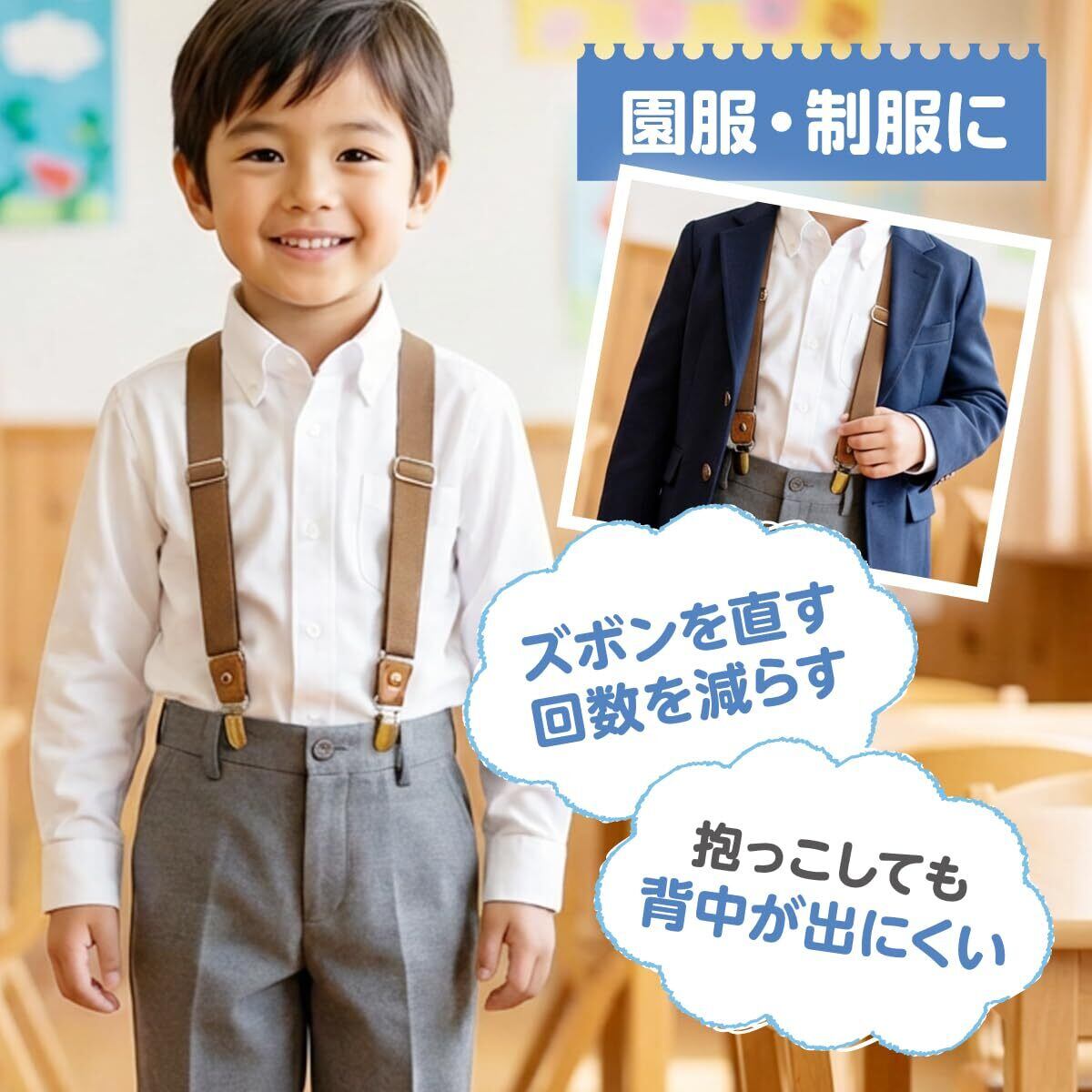 [しあわせ倉庫] キッズ サスペンダー 子供 【4点留め ズボンずり落ち防止】 長さ調整 吊りバンド 男の子 園服 制服 フォーマル