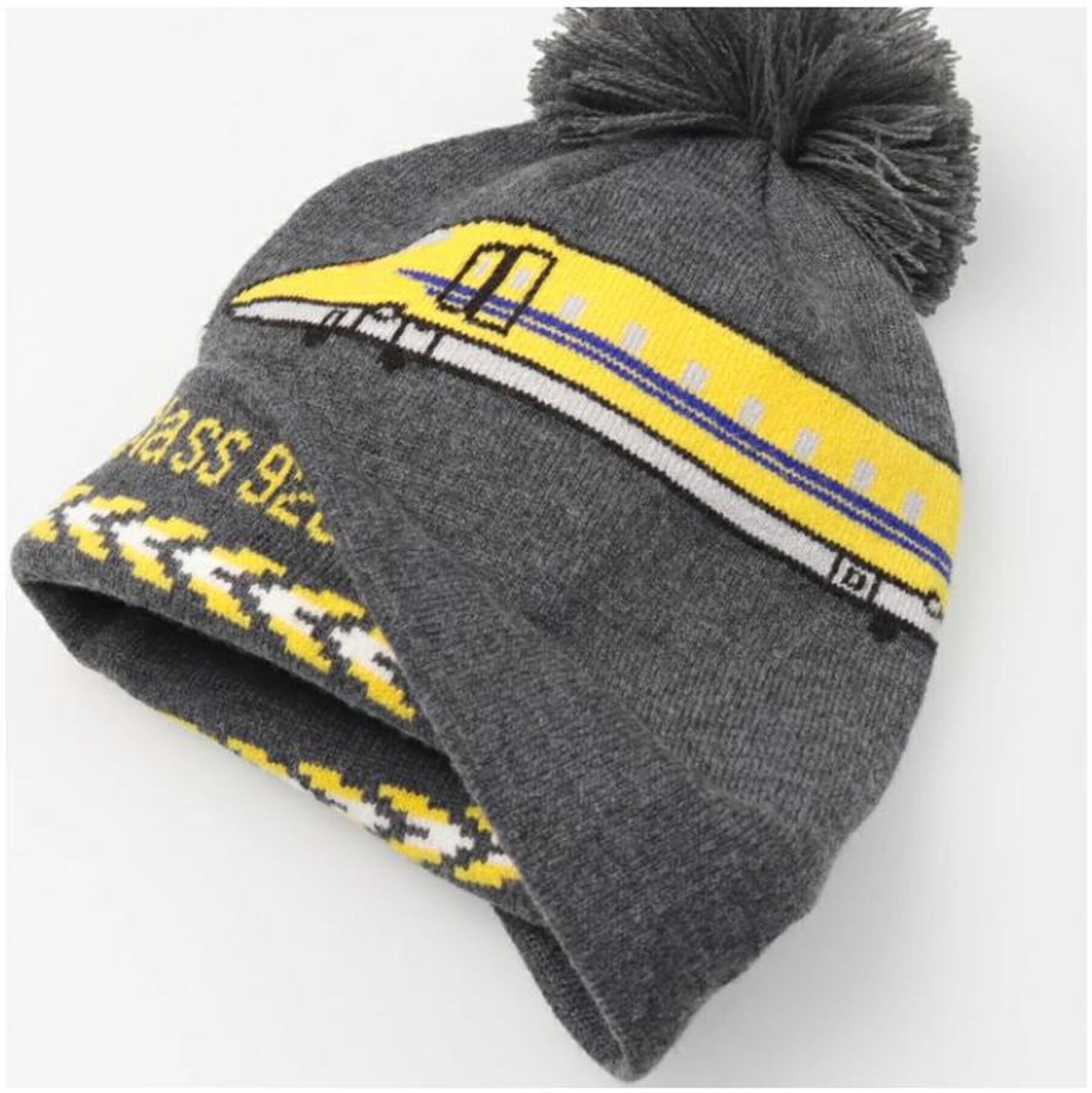 はやぶさ、こまち、ドクターイエロー、の柄が付いたニットキャップです。